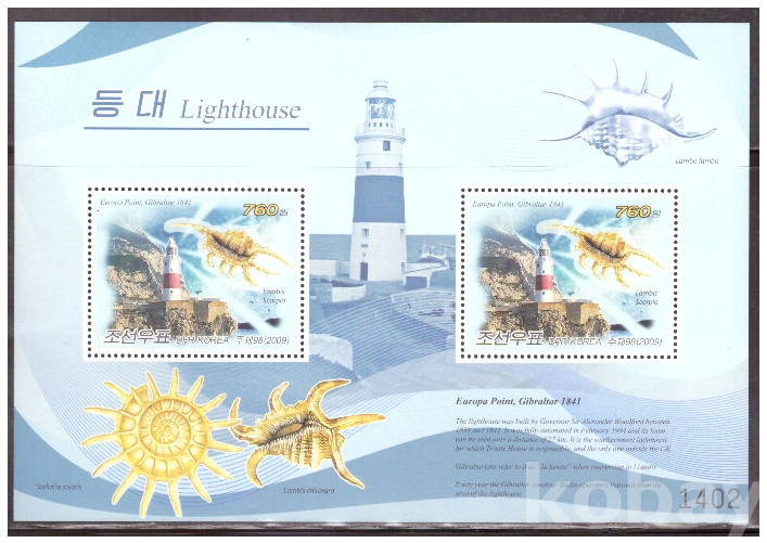 (등대) 북한 2009.10.24 지브랄타르 유로파 포인트등대와 해파리 sheet of 2 MNH