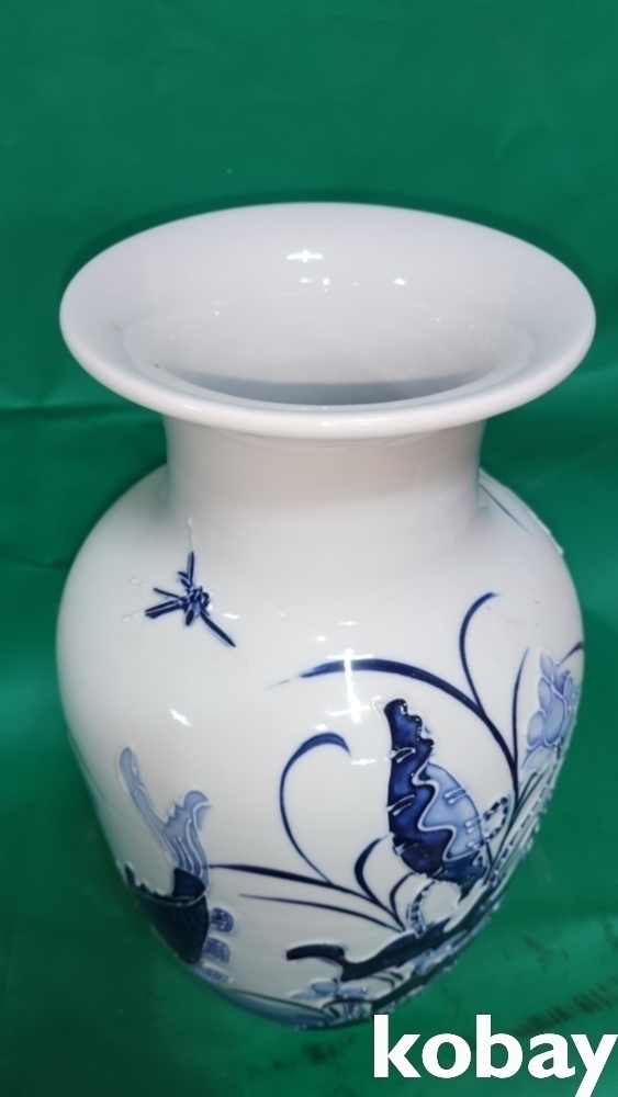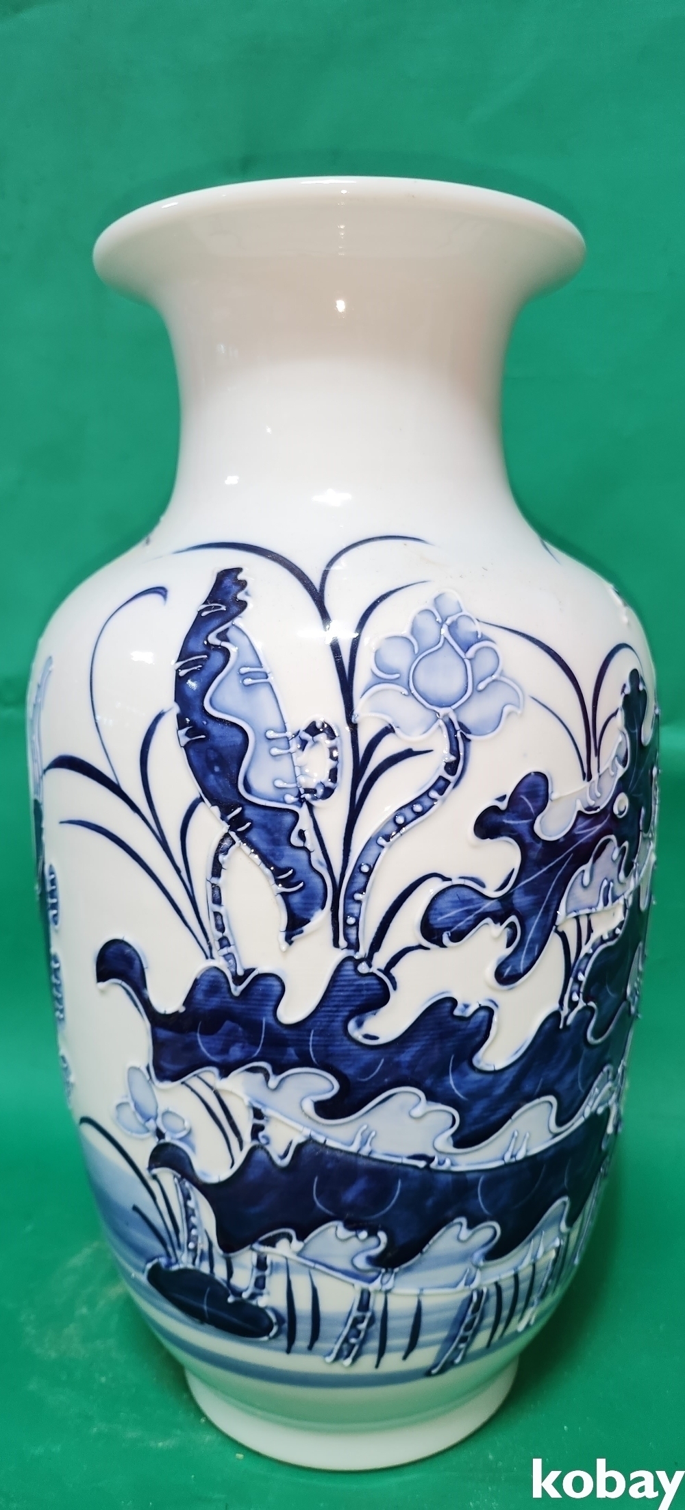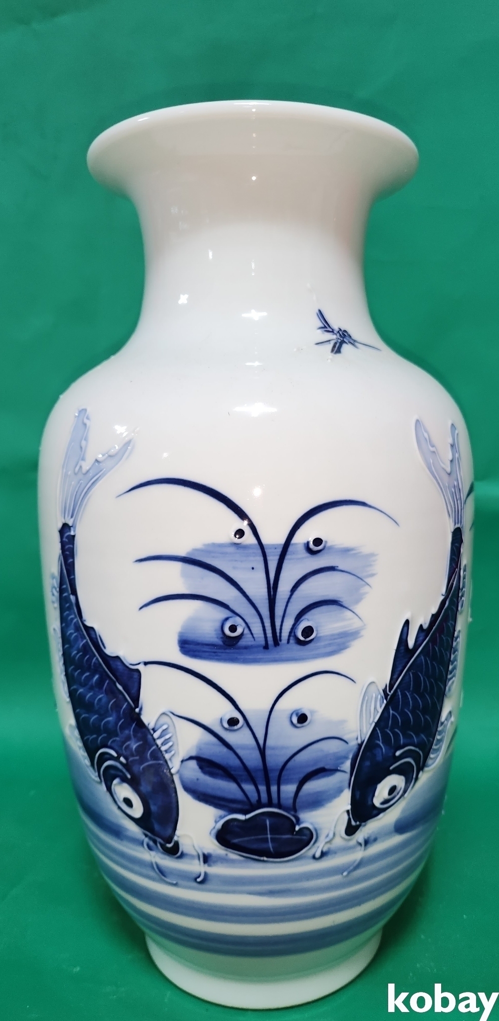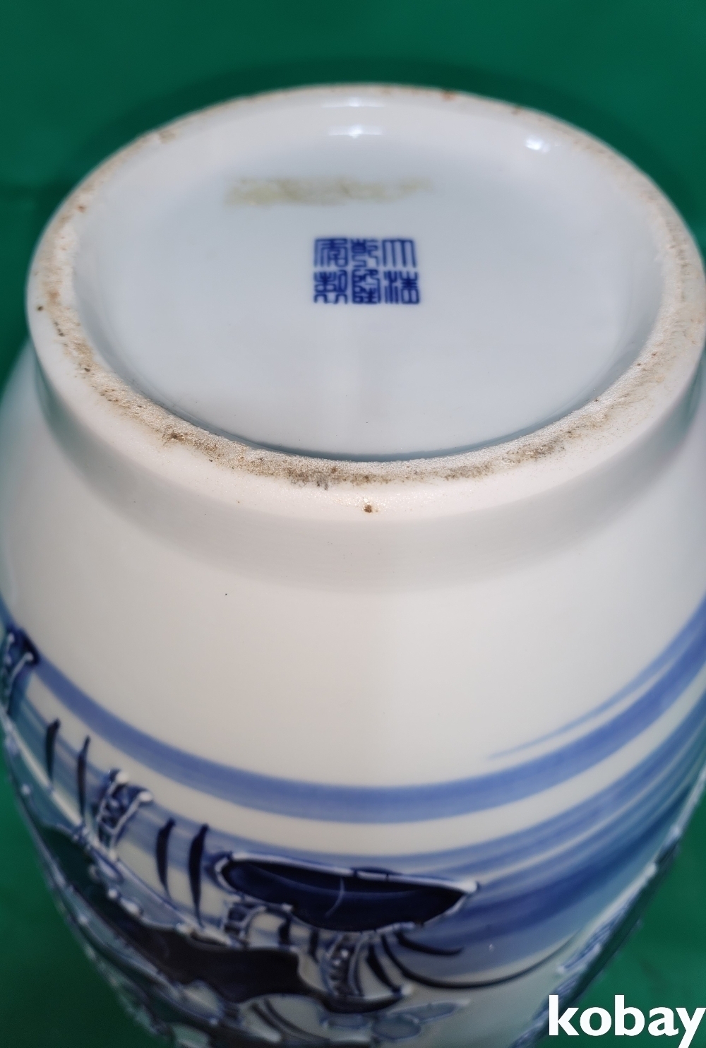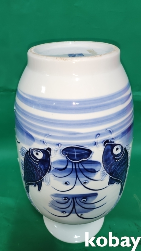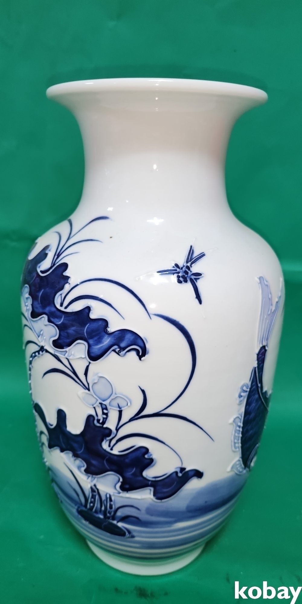 대청건륭 관지 청화백자 연꽃과 물고기 문양 광구병입니다,