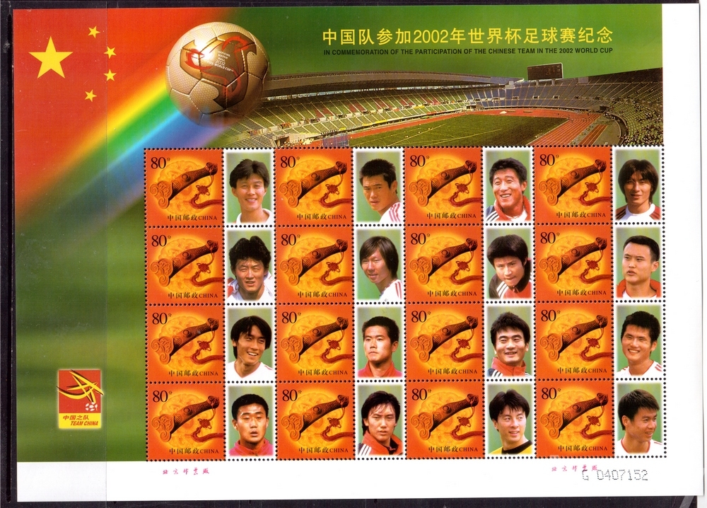 (월드컵) China (중국) 2002 한.일월드컵축구대회 sheet of 16 MNH