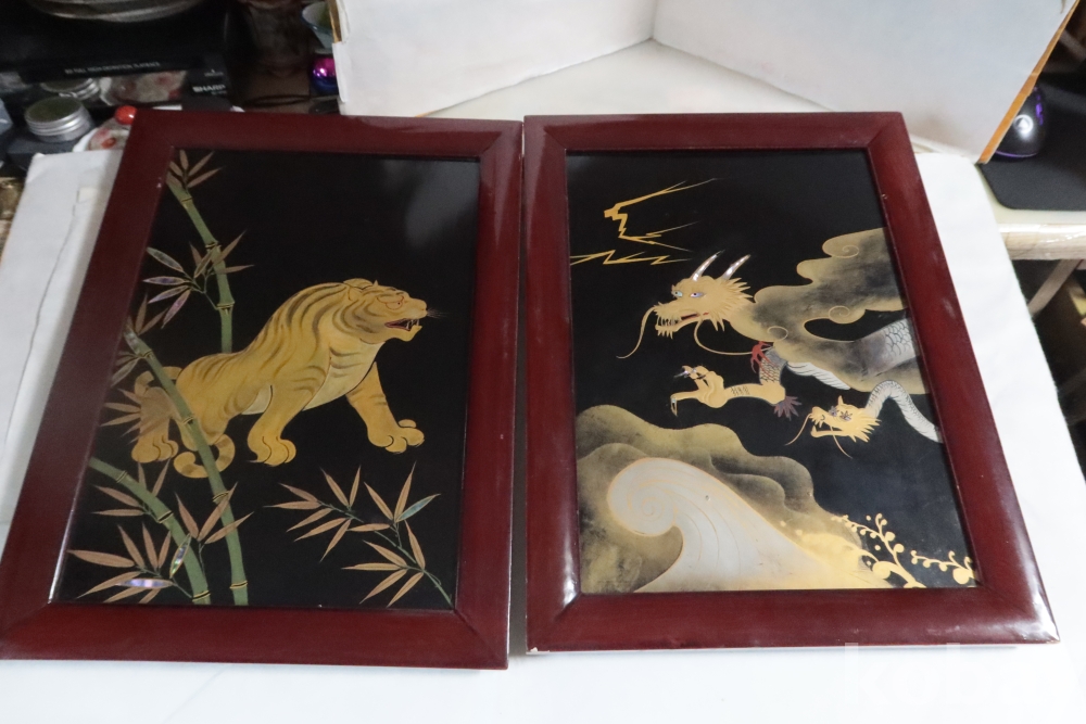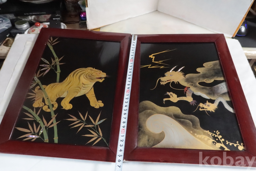 칠기 용호상박의 2 세트 임니다 고미술 이며 다이나믹한 그림 등등 당대의 명물 임니다