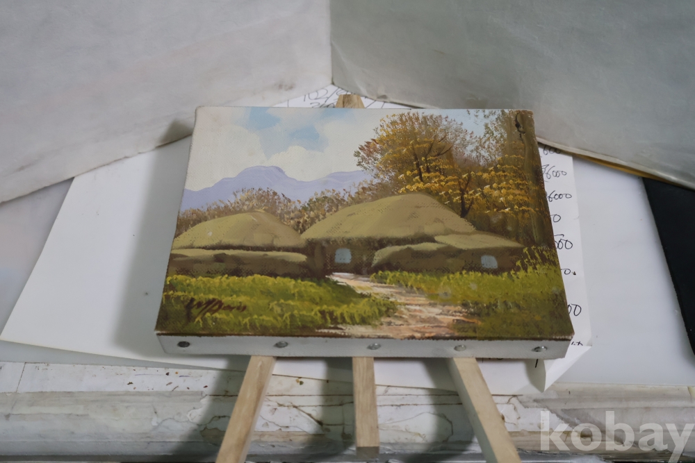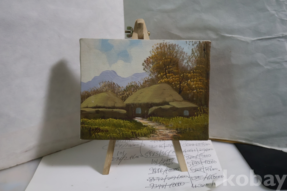 유화 임니다 평화로운 분위기 특이한 받침대를 가진 앙증맞은 명화 임니다 사진 참조 하세요 10년전에 구입