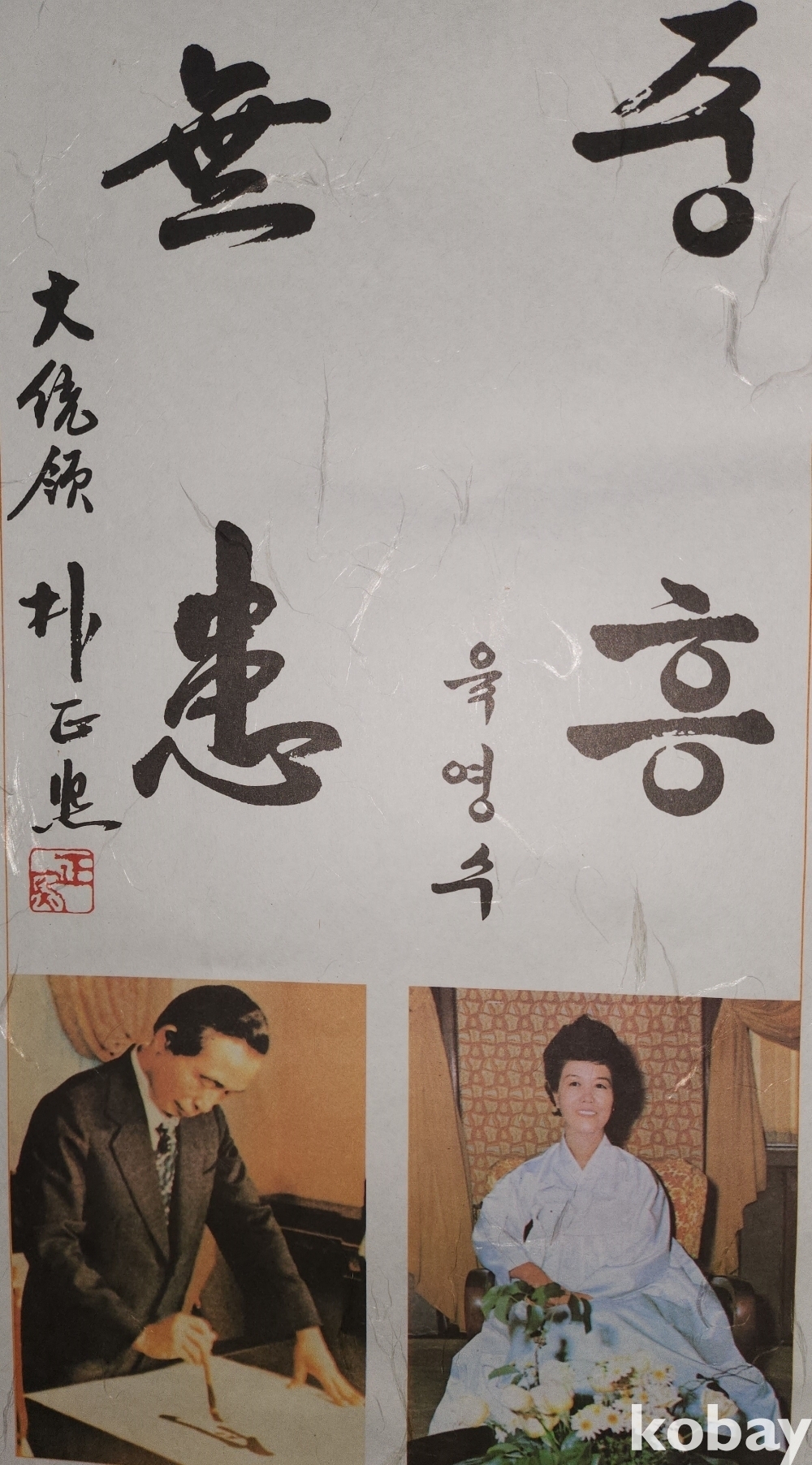 대통령 박정희 :유비무환" 육영수 "민족중흥" 한정판 인쇄본입니다,