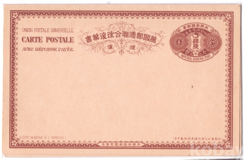 대한제국 엽서#5. 4전권. 왕복. 전환국 발행 (未사용) 외체(外遞)용.