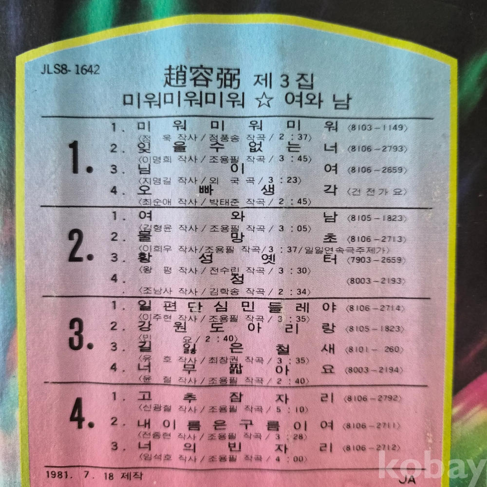 [8트랙 테이프 기획전] [조용필] 제3집 / 미워미워미워 여와 남 고추잠자리 外