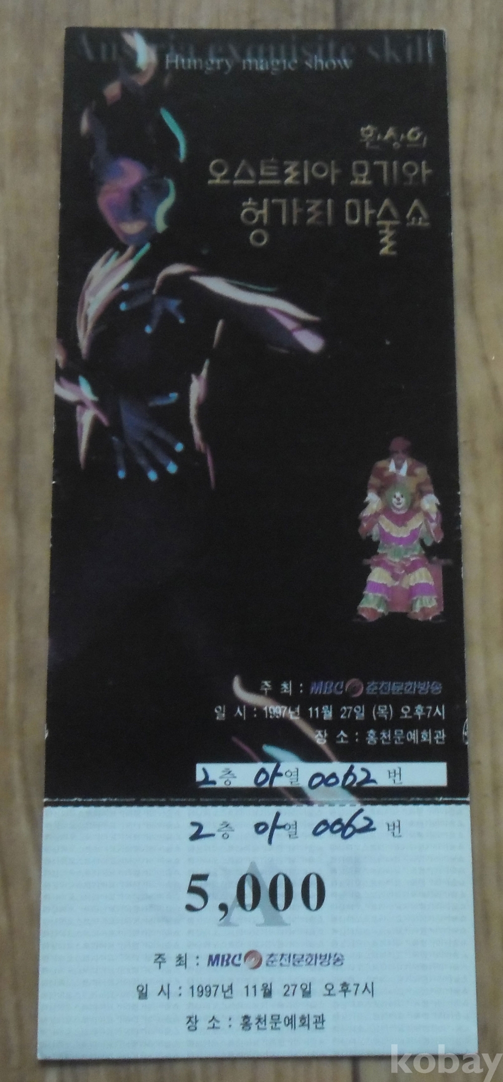 각종 티켓: 1997년 오스트리아.헝가리 마술쇼(홍천문예회관)