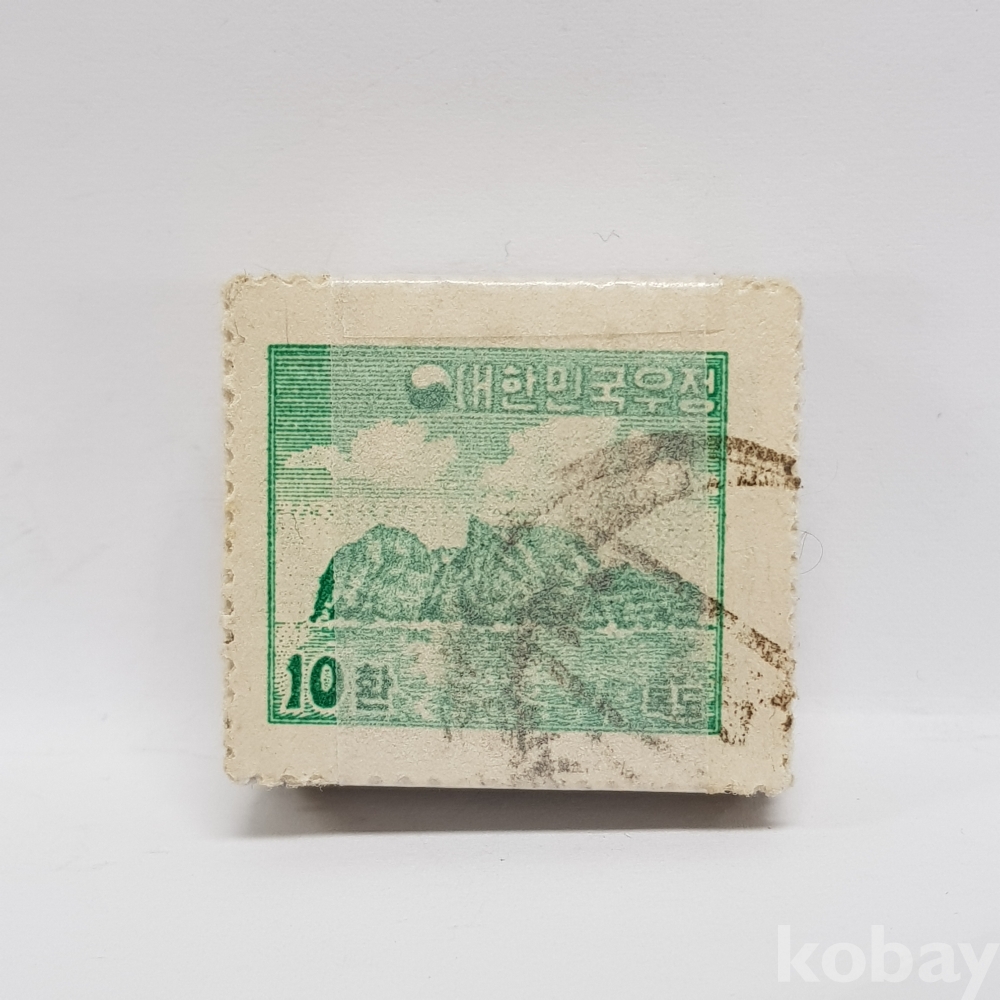 - 1950년대 제 2차 환화 10환 독도 일부인 미확인 사용제 우표 약 100매 묶음