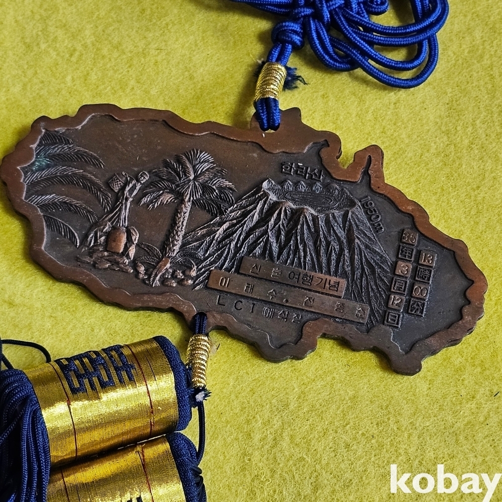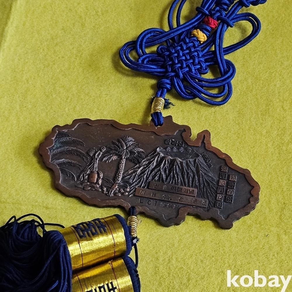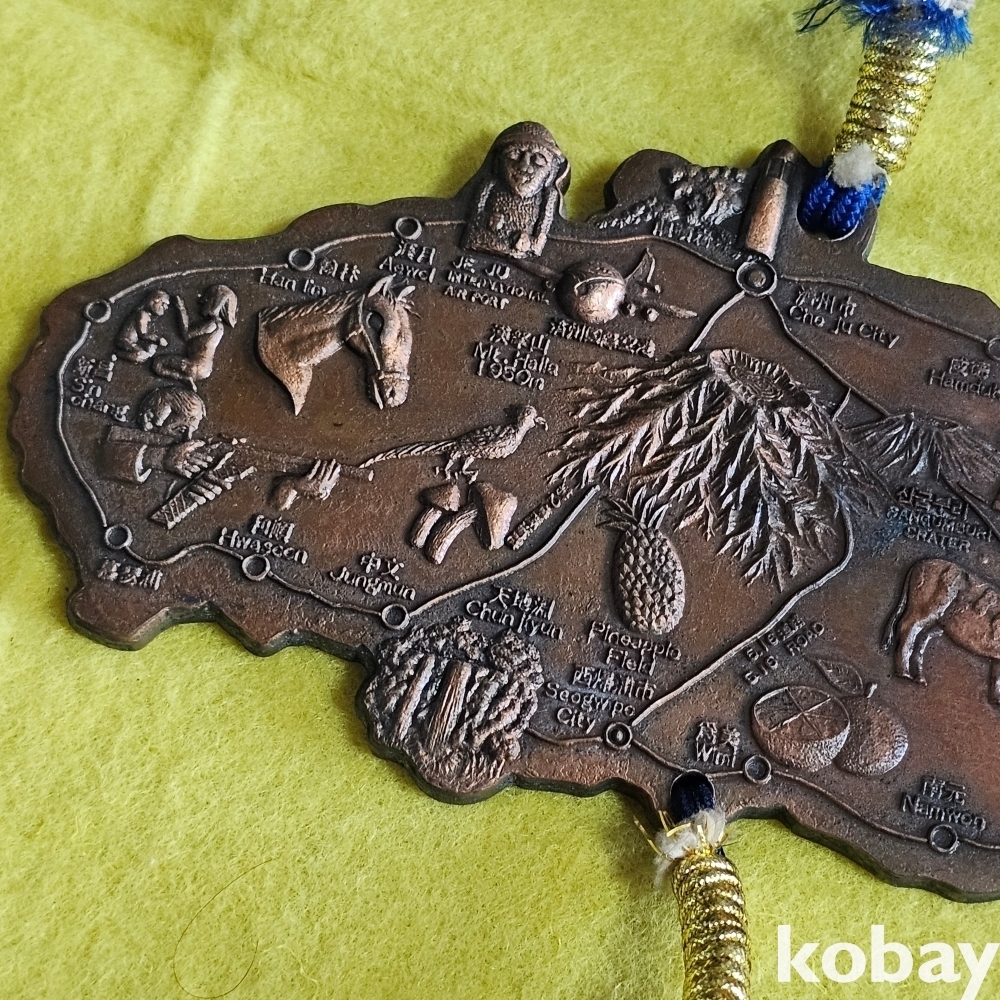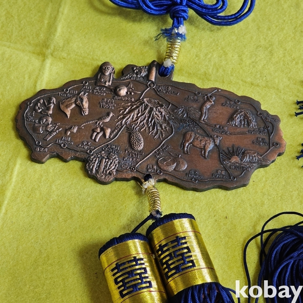 (((근현대사자료/메달))) 오래전 제주도관광기념 제주도 섬모습 크고 묵직한 매듭달린 벽걸이 장식 (청실)