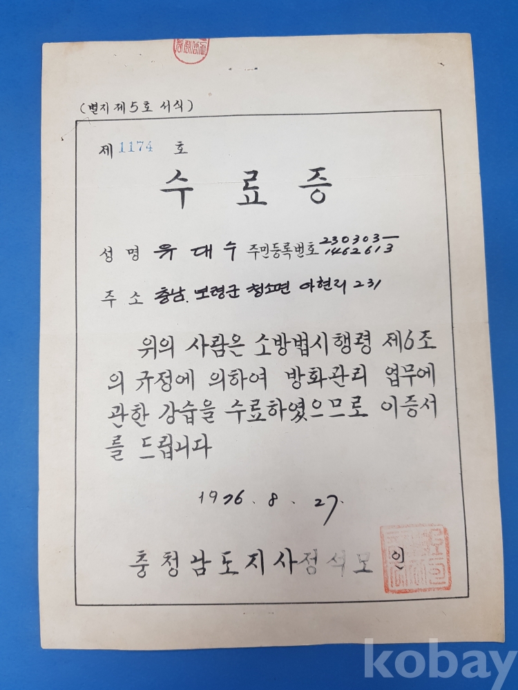 **** 근현대사 자료 - 방화관리업무 관련 수료증