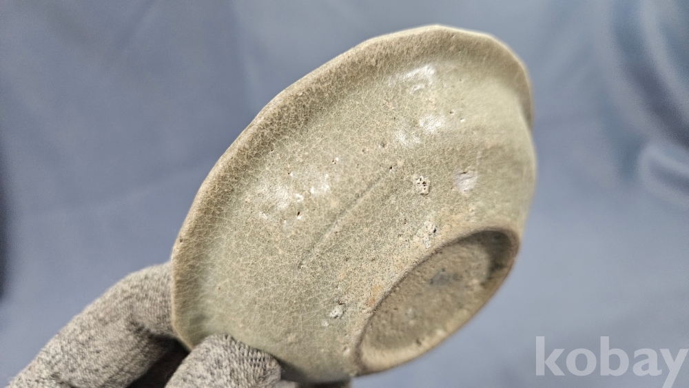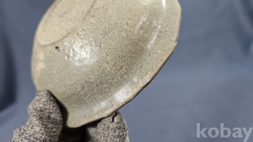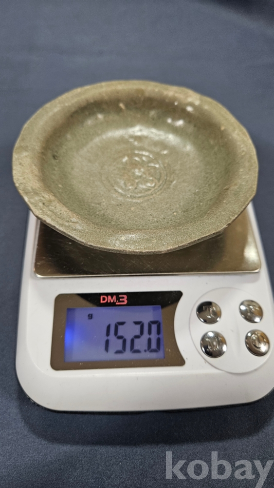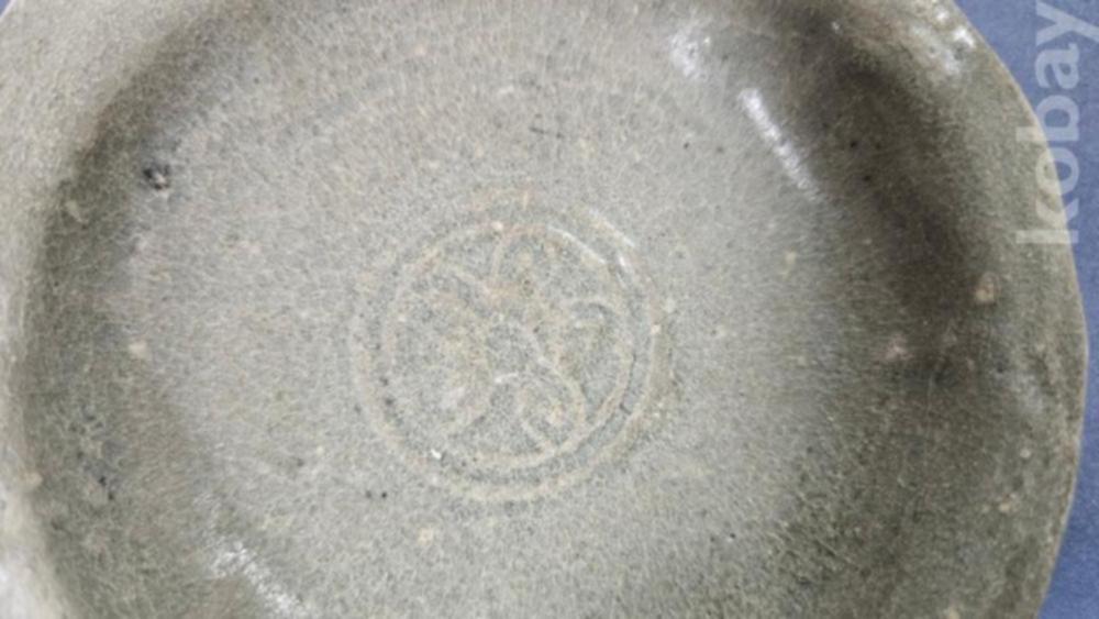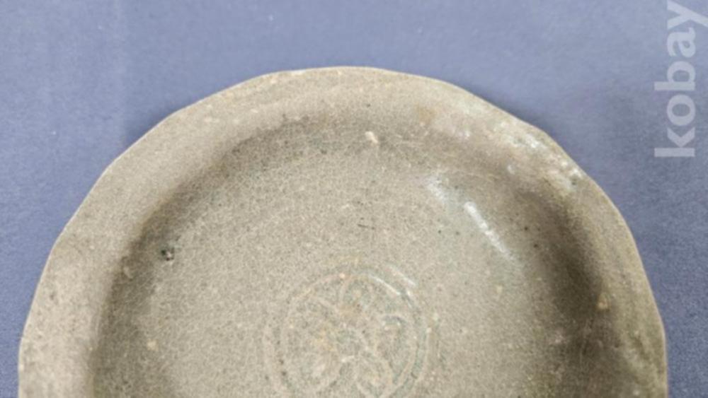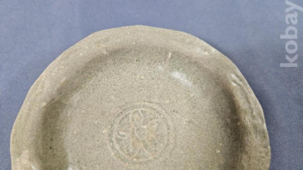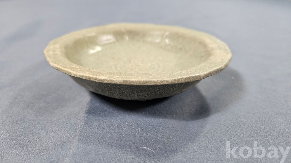 중앙에 꽃문양이 들어있는 고려청자 접시입니다.