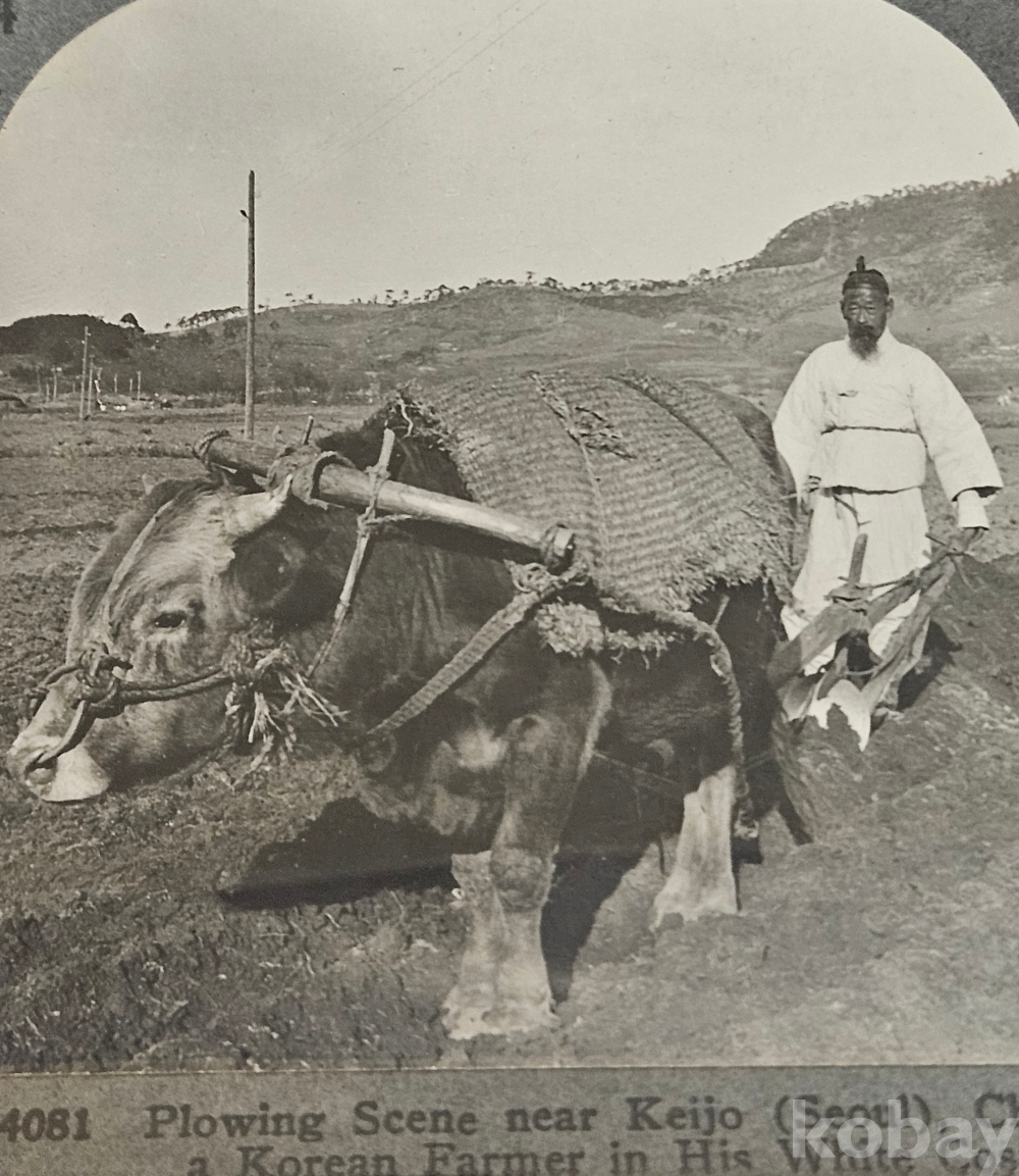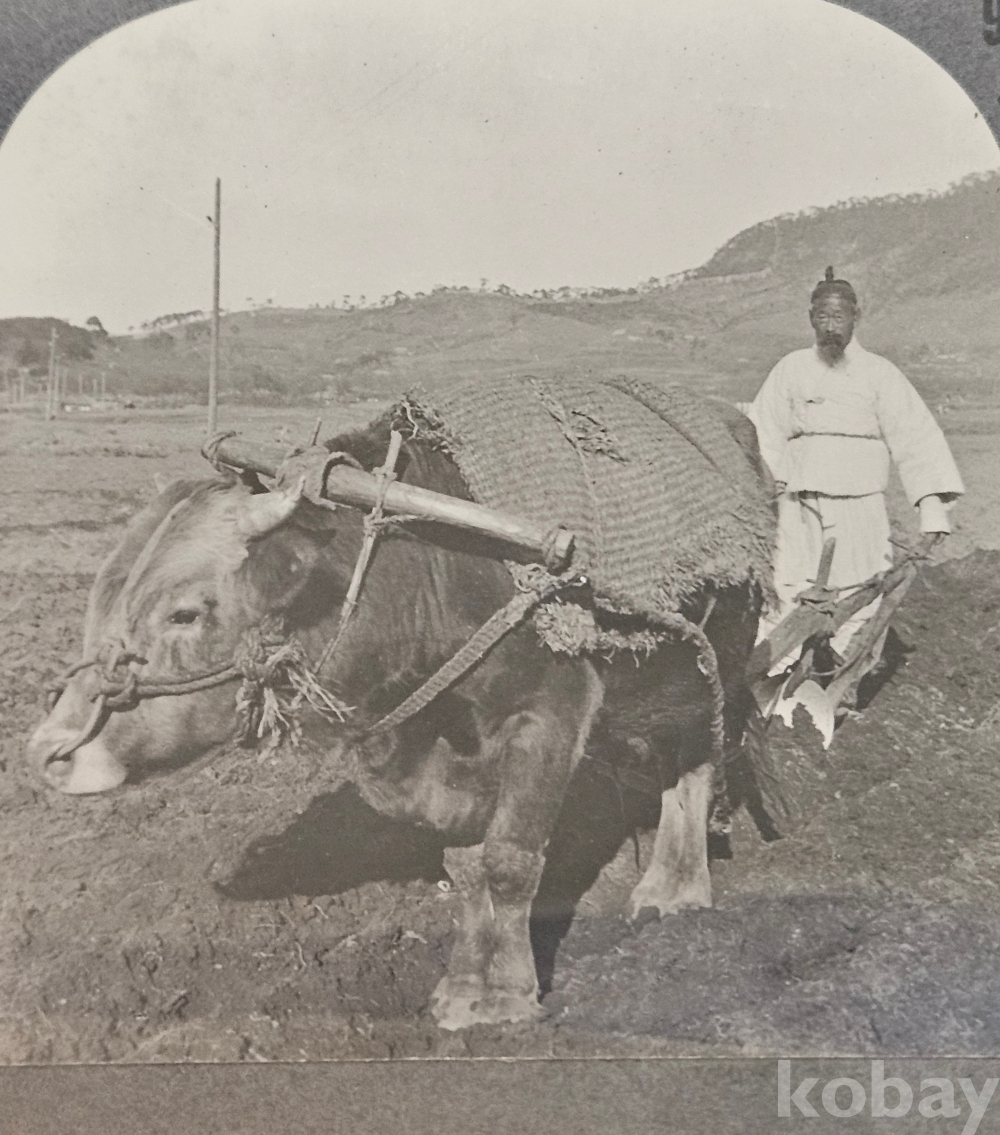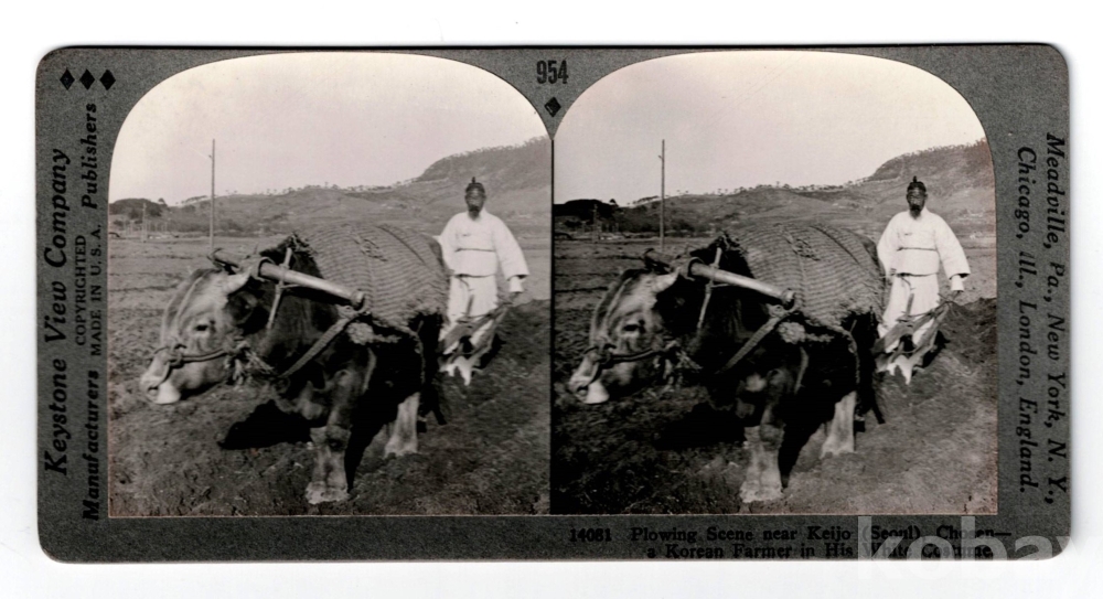 에서 생산된 입체사진 하얀옷을 입은 조선 농부