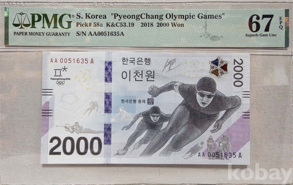 -대한민국 평창동계 올림픽기념 지폐 PMG 67 고등급이며 그레이딩 초판 입니다.