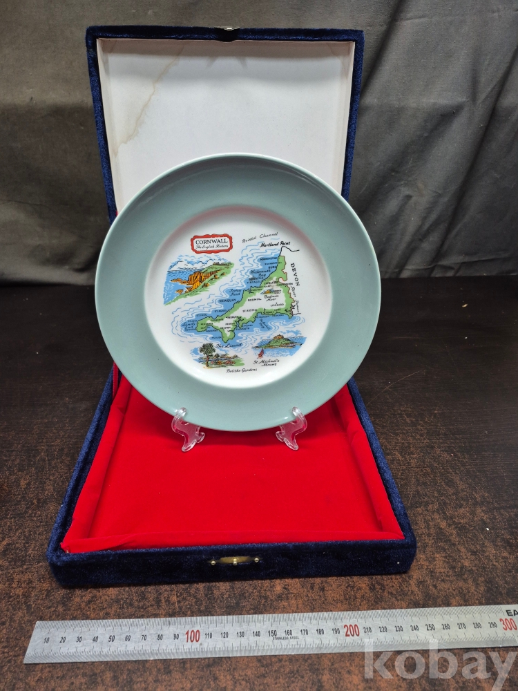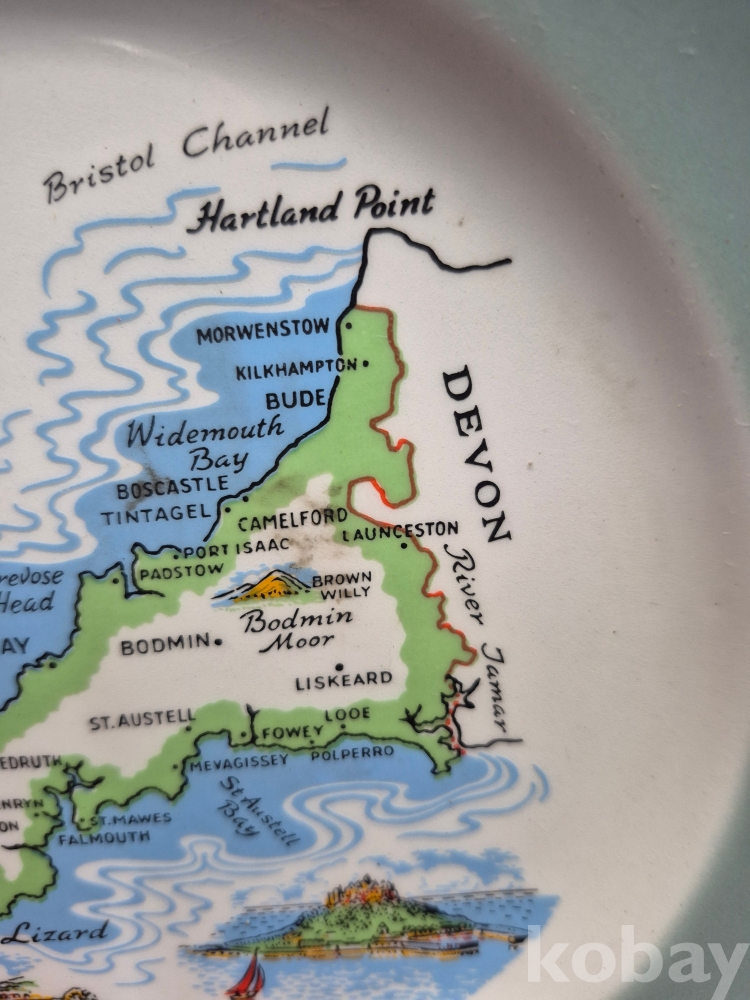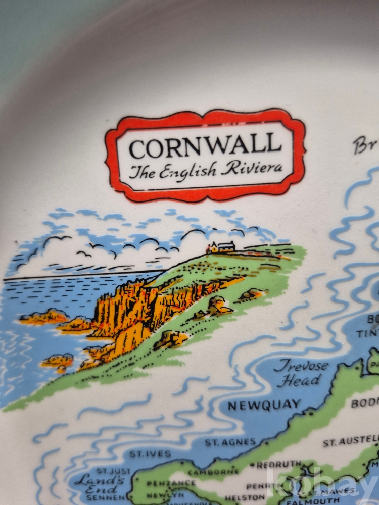 영국 콘월 데번 지역의 지도가 그려진 관광기념 품 도자기 접시 22*22*2.5