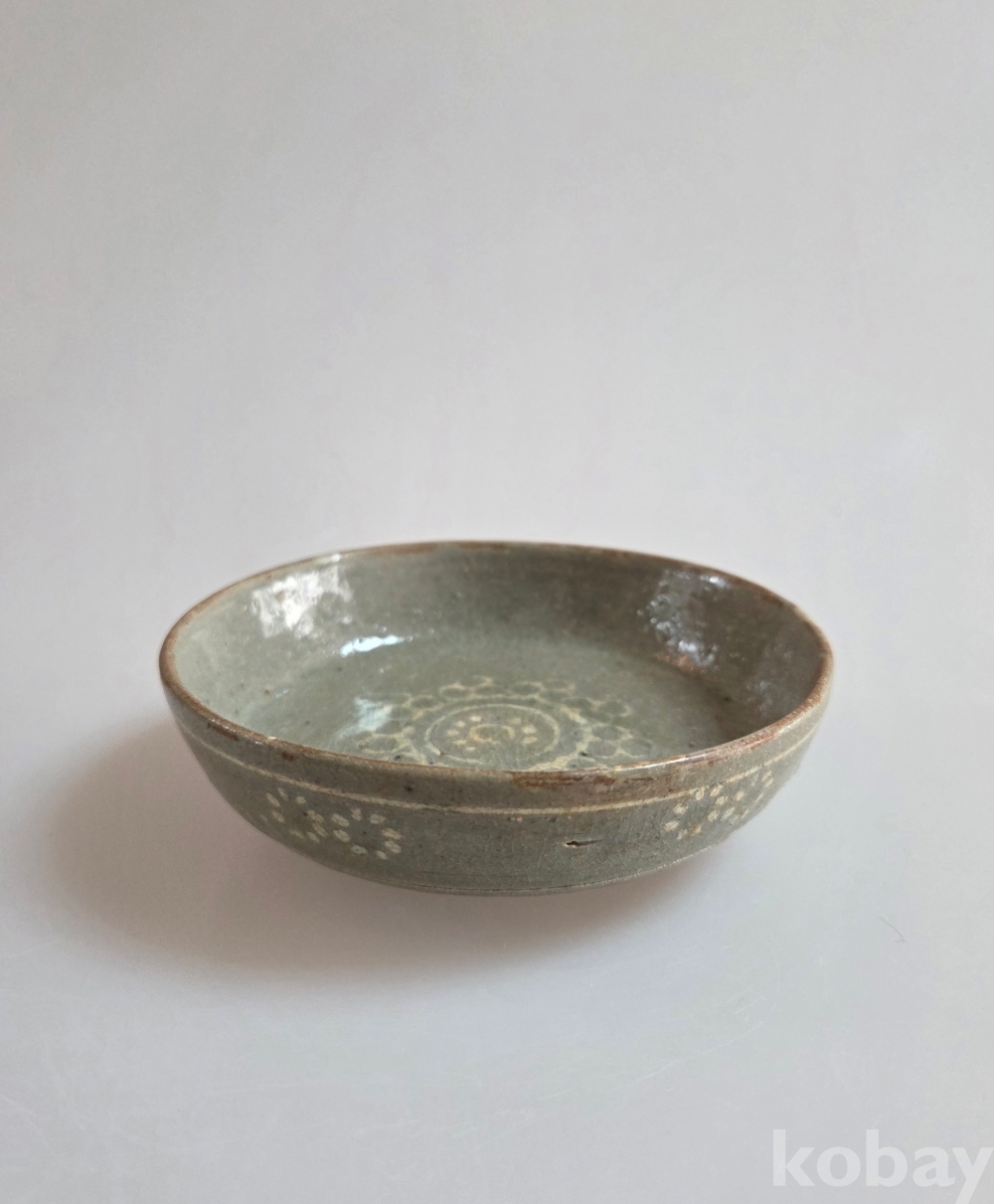 조선시대 14~15세기경에 만들어진 분청사기 백상감 국화문 접시입니다