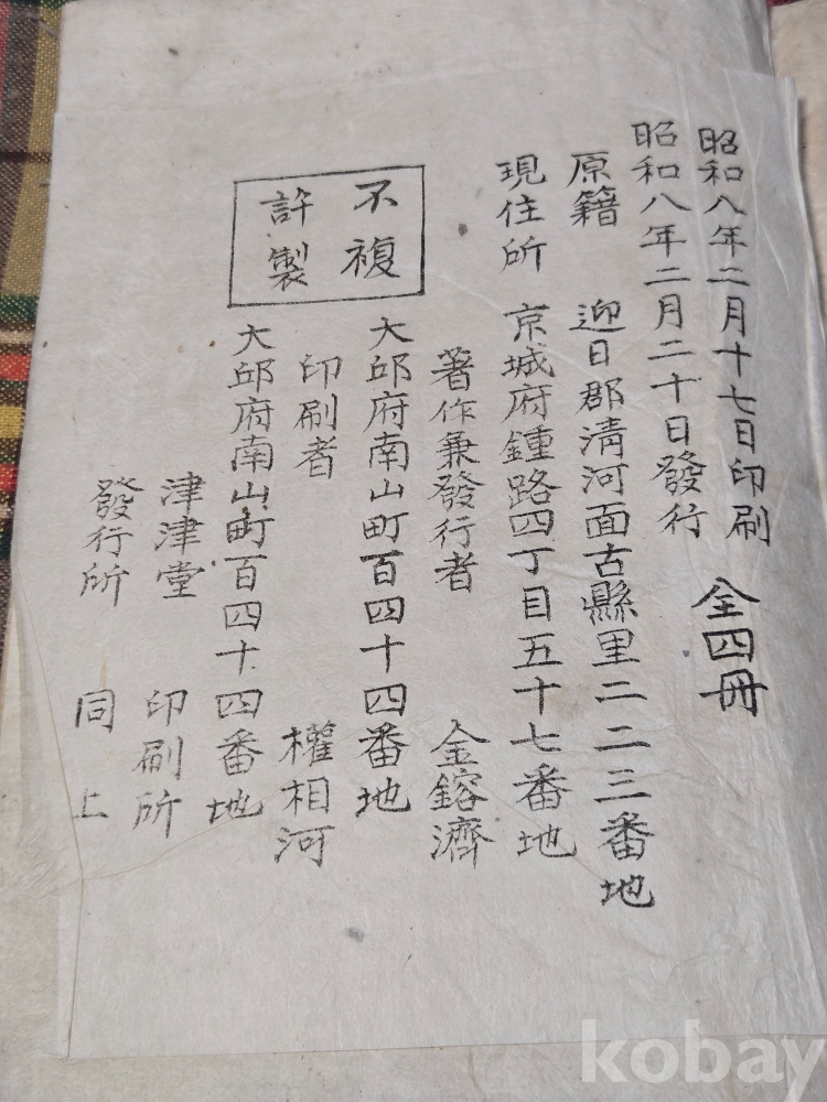 오래된 책들로 구김, 얼룩 부분손상등이 있으나 별도의 특기사항이 없을경우 낙장없이 온전합니다.