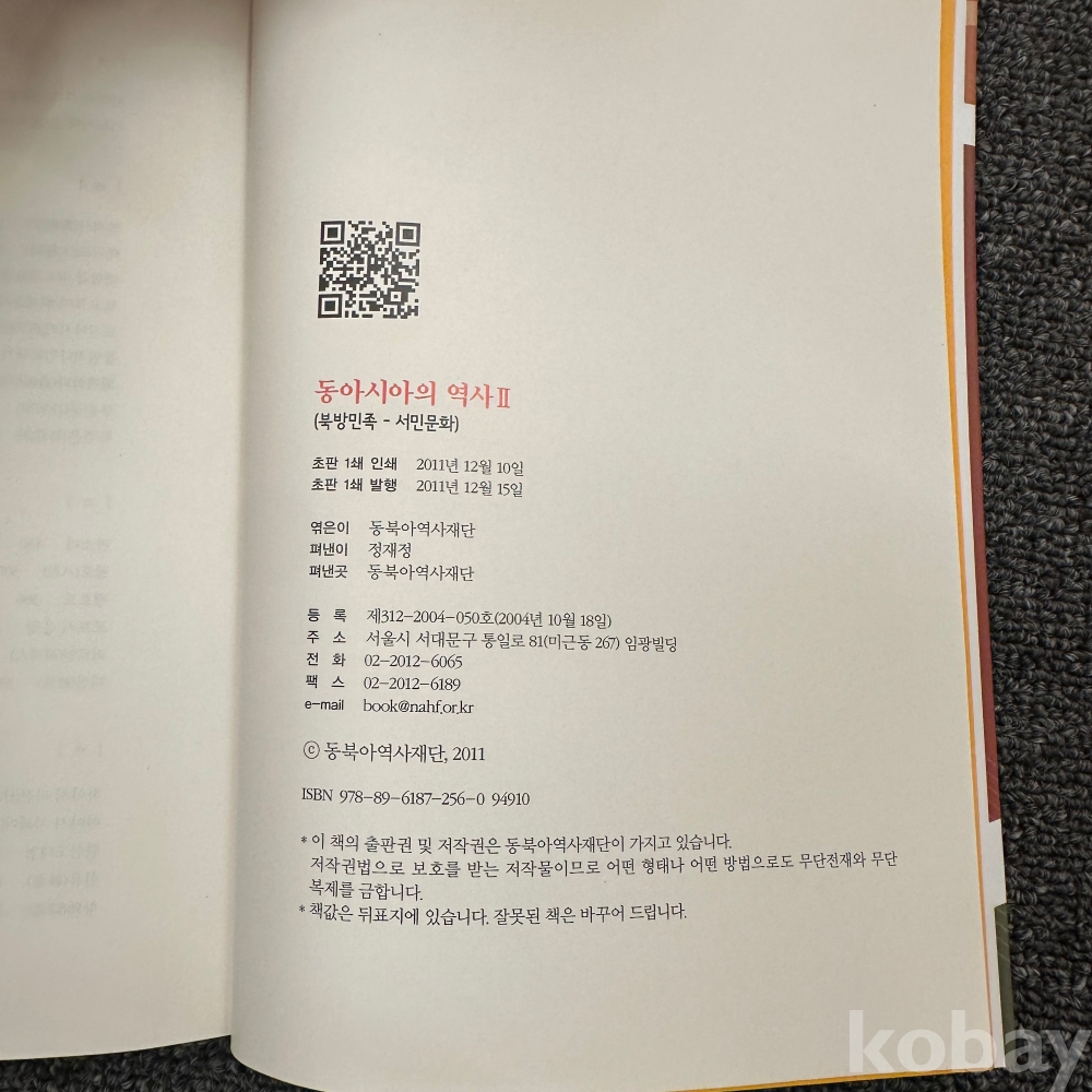 [세계사, 동아시아사] 동북아역사재단 편, <동아시아의 역사 1, 2>, 2011, 동북아역사재단, p. 434, 상태 상급(사진참조)