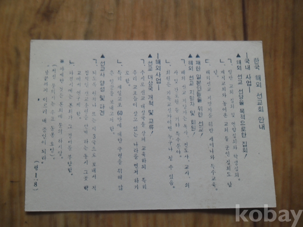 1968년 한국해외선교회 발행 카드형 카렌다