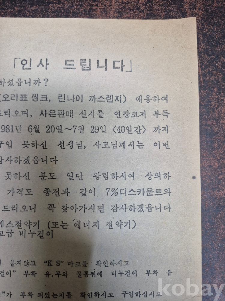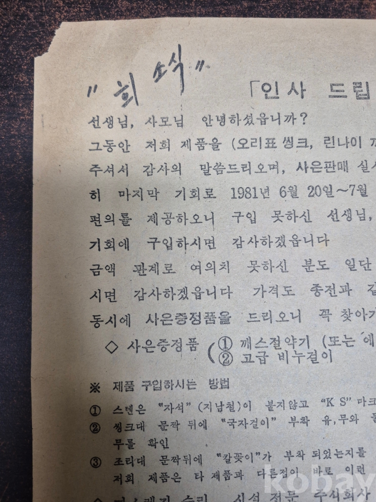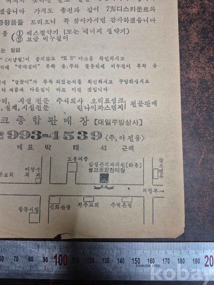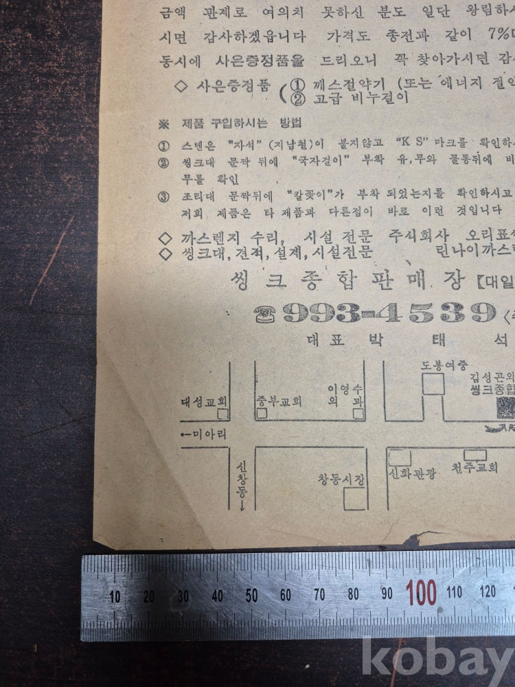 1980년대 도봉여중 옆 김성곤 외과의원 지하 씽크 종합 판매장 광고지 전단지 찌라시