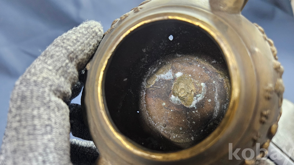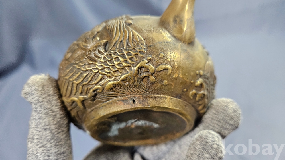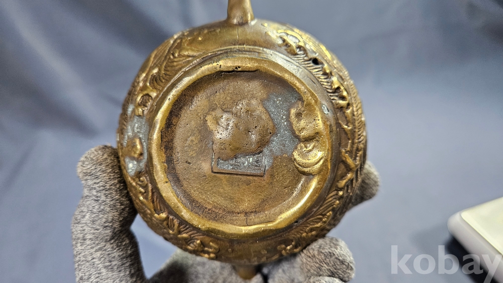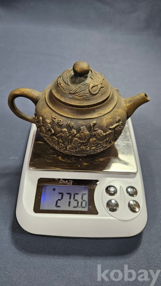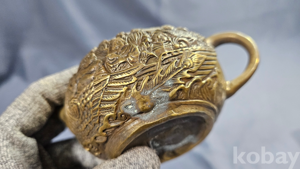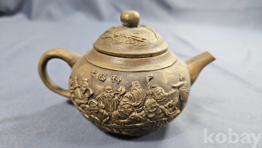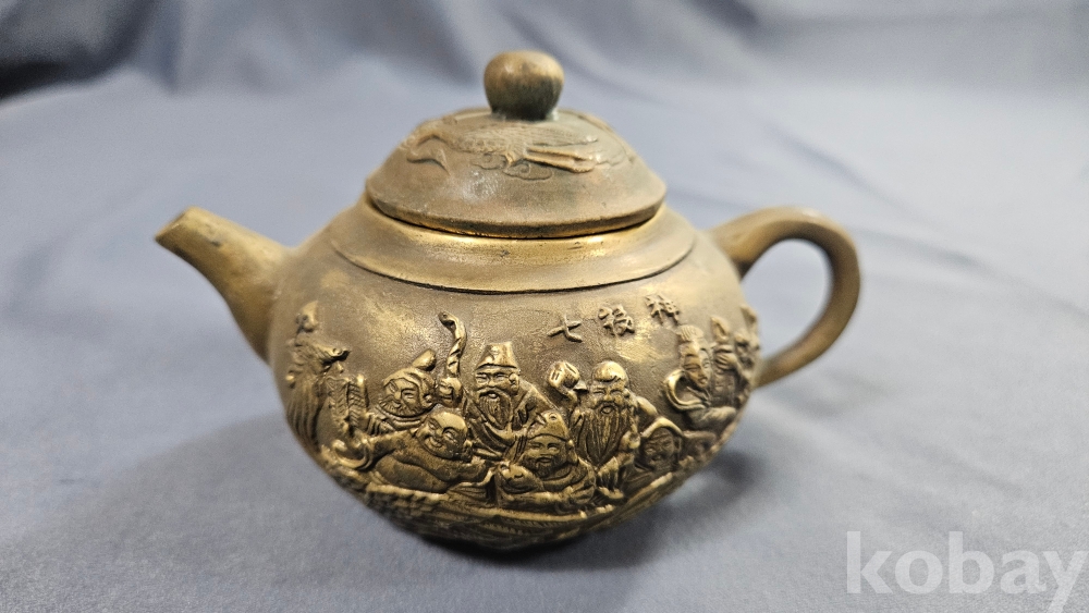 칠신선 문양이 양각으로 들어있는 동 주전자 입니다.