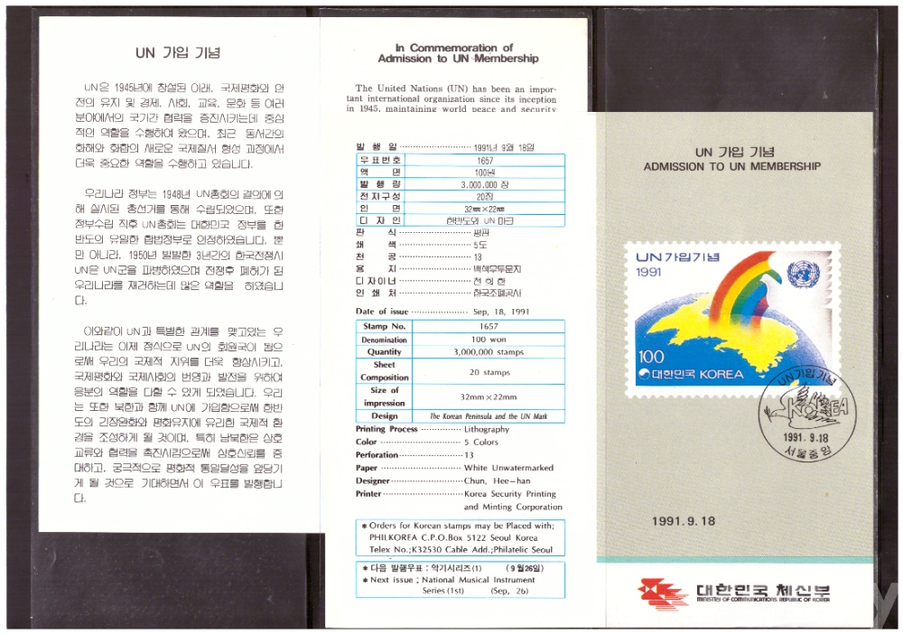 (안내카드) 1991.9.18 UN 가입 (접지않음)