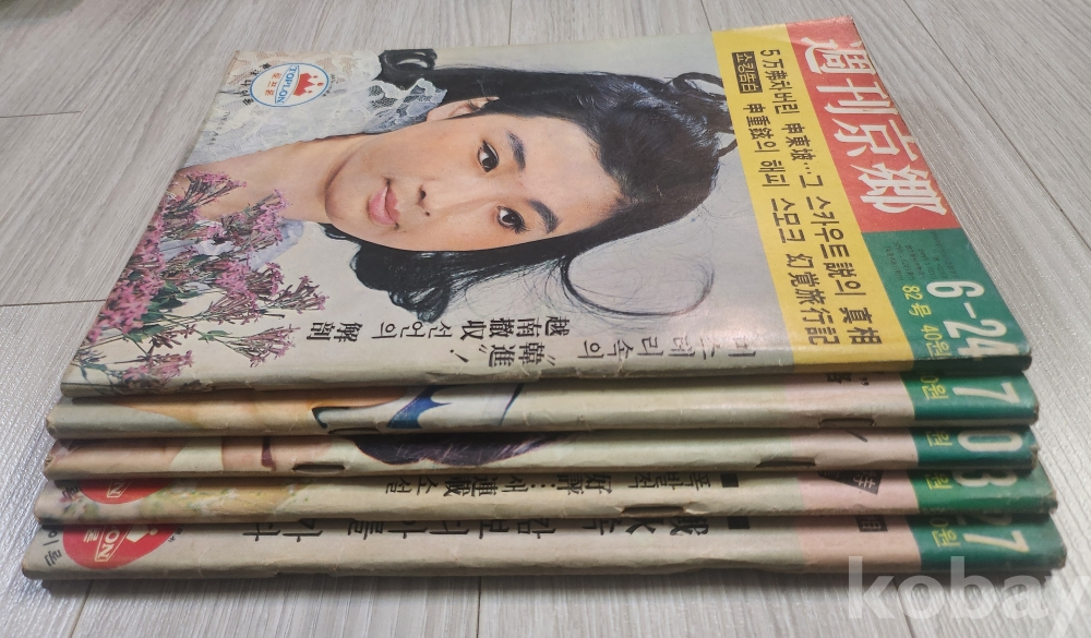 1970년도 주간경향 (정가40원) 78.79.80.81.82.호 5권 입니다 당대 연예인. 광고.사진들과 이슈들이실려 있습니다 상태 낙질 파본없이 최상 입니다