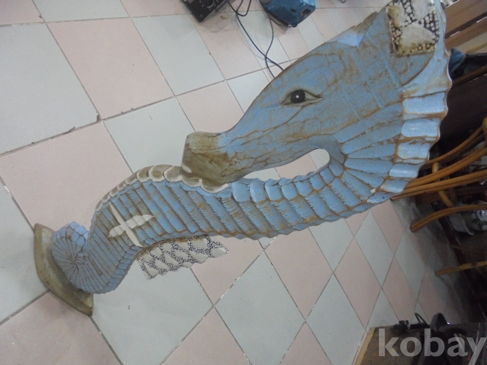눈이살아있는듯한 아주신비한 해마를 크게 잘만들어 구경거리가되는 피나무로 아주잘만든 신비한 멋있는 튼데없는 피나무 푸른큰해마