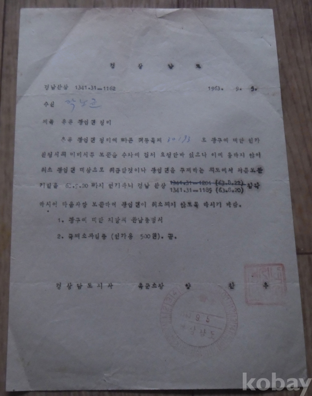 1963년 유휴 광업권 정리(군정 경남도지사)