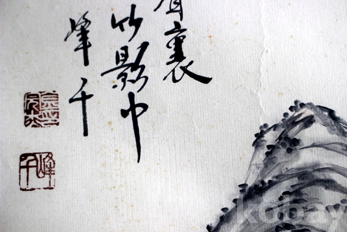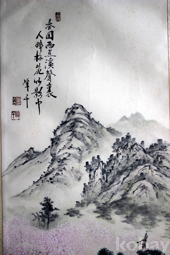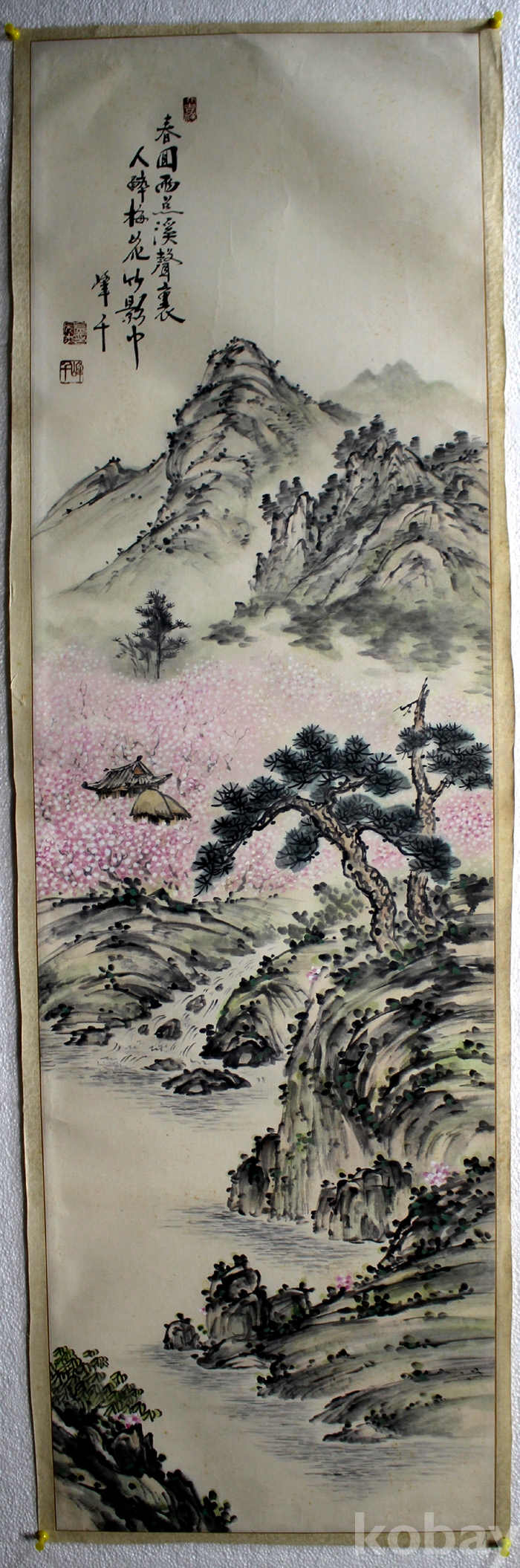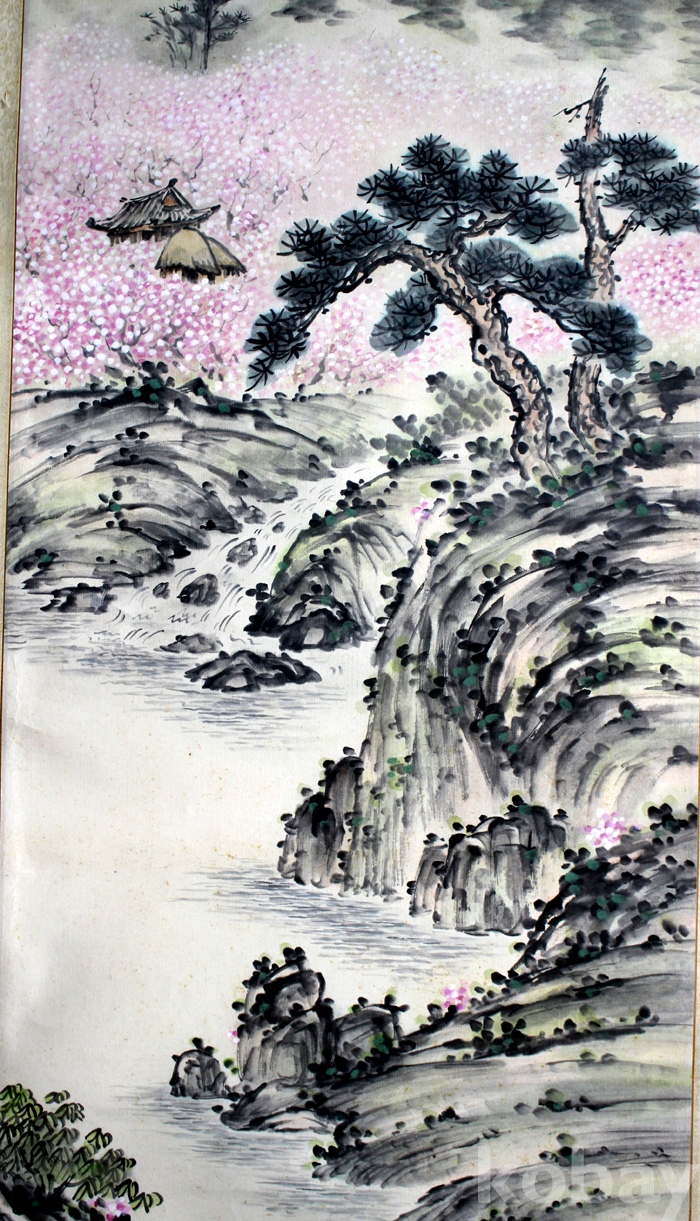 峰千(봉천) 김완걸의 작품 (2) - 기와집과 정자가 있는 복사꽃이 가득한 냇가의 봄풍경