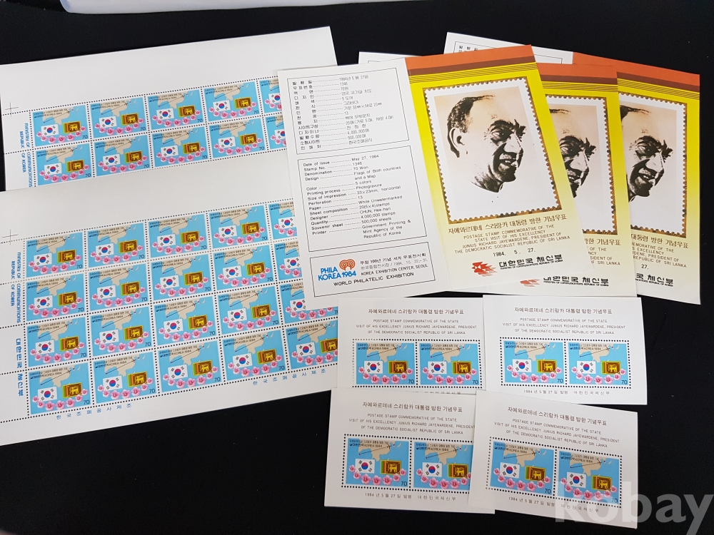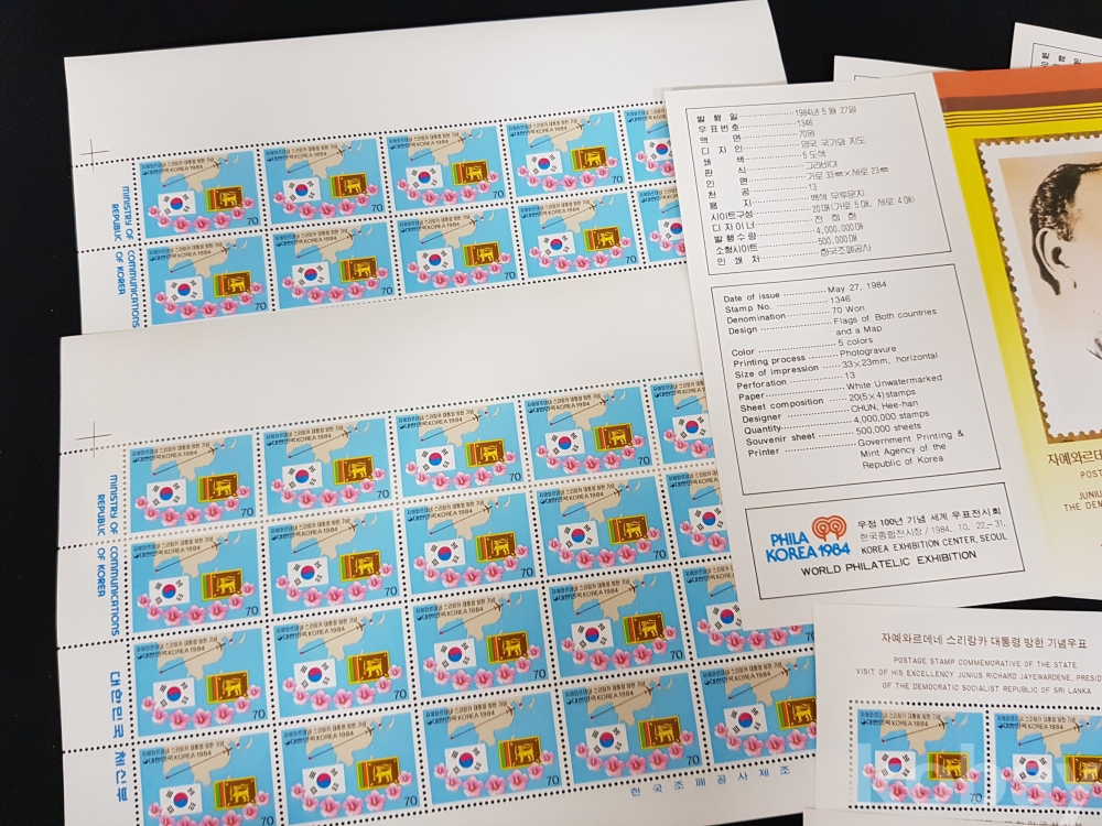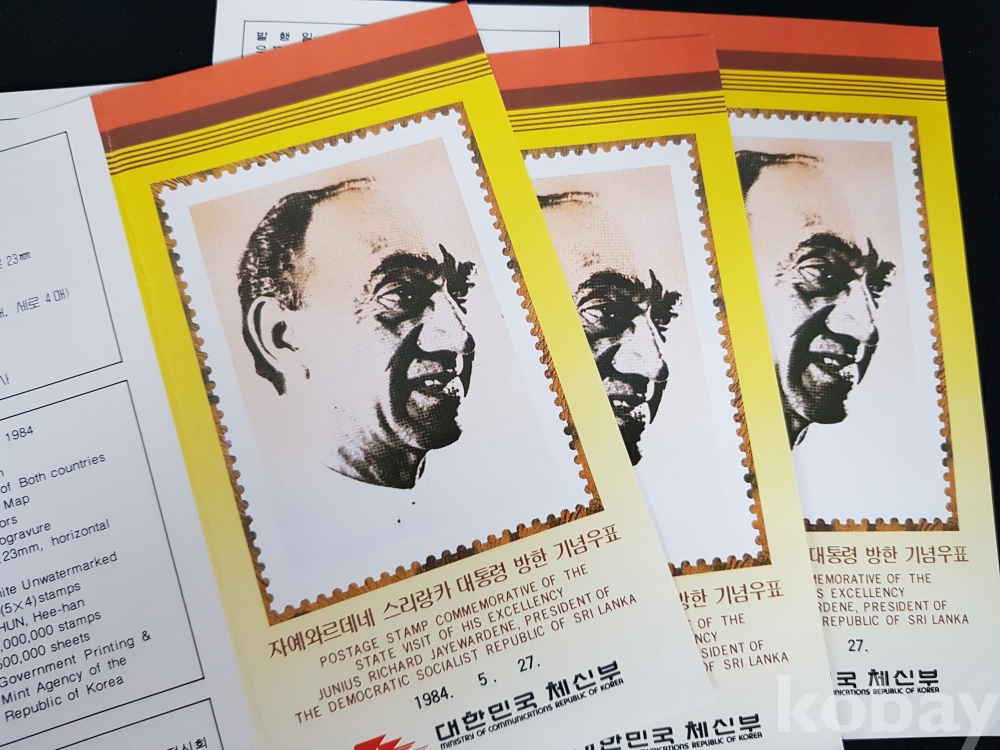 - 1984년 자예와르데네 스리랑카 대통령 방한 기념 전지, 시트, 안내카드 등