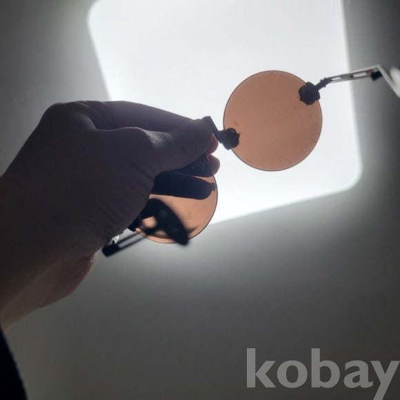 오래된 양식의 안경입니다. 김구 선생이 쓰던 디자인의 안경이고 렌즈 기술이 없던 시절 수정을 얉게 깎아 만들었습니다