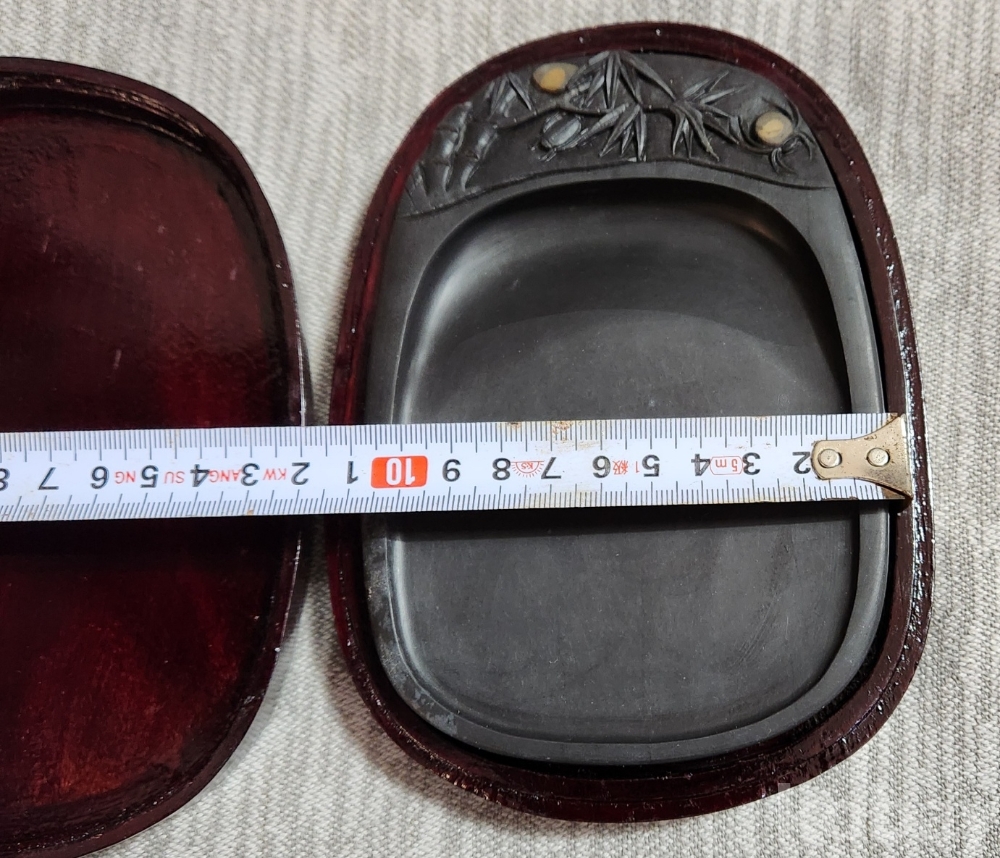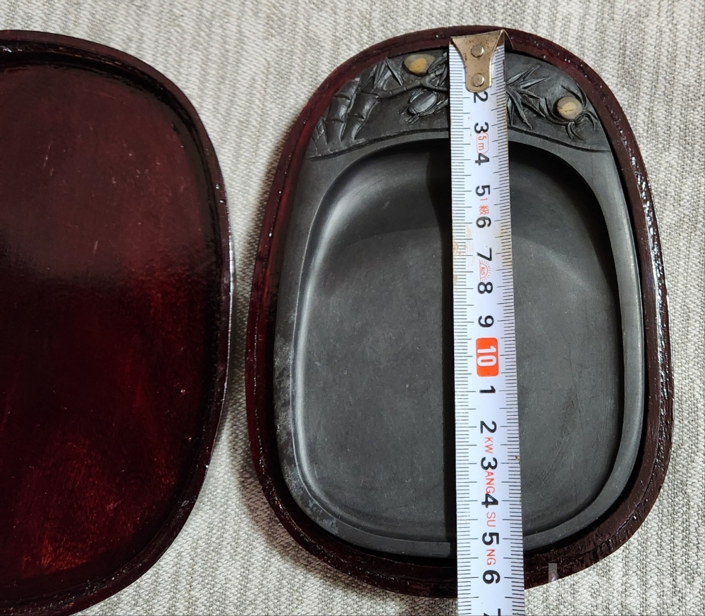 케이스 13.5 cm 길이 18cm 높이 3.5 cm 벼루 가로11.5 cm 세로 15.5 cm 높이2 cm