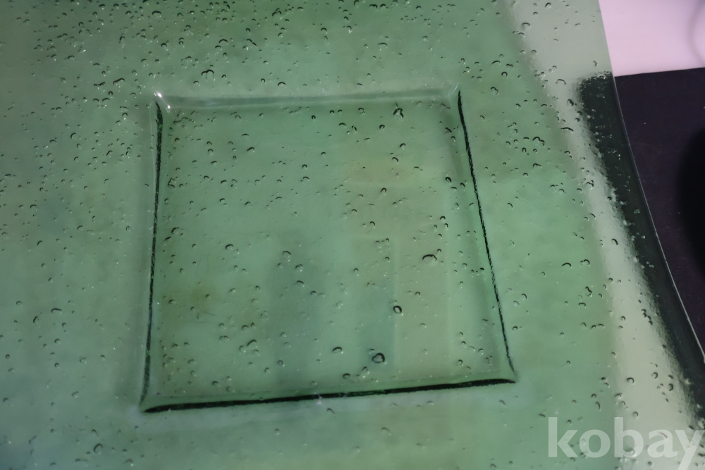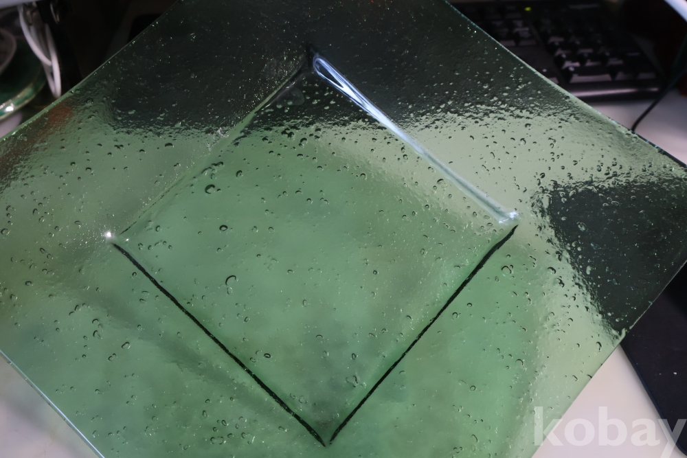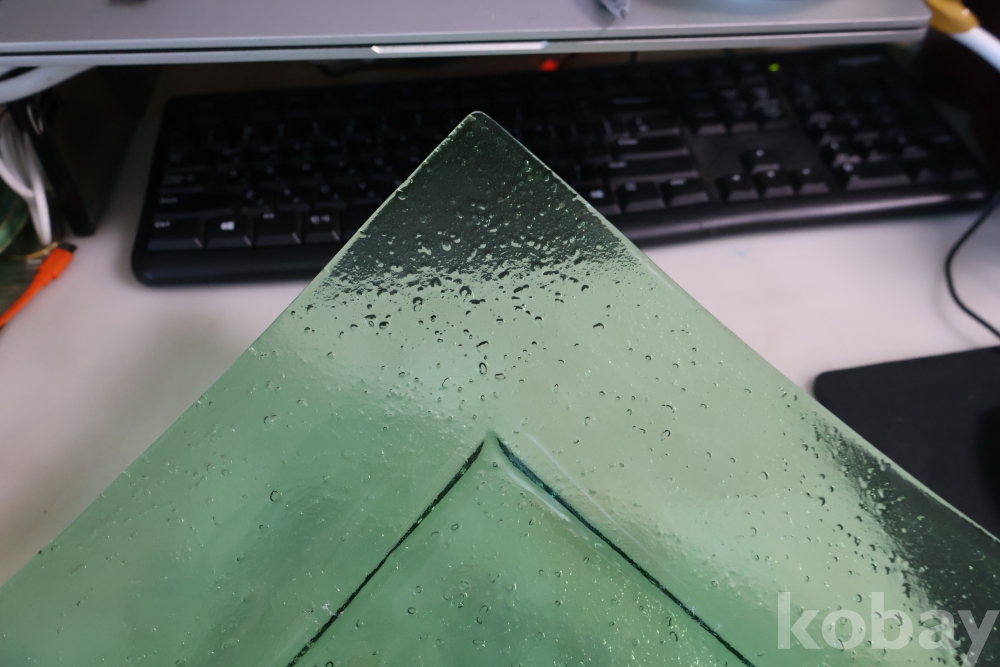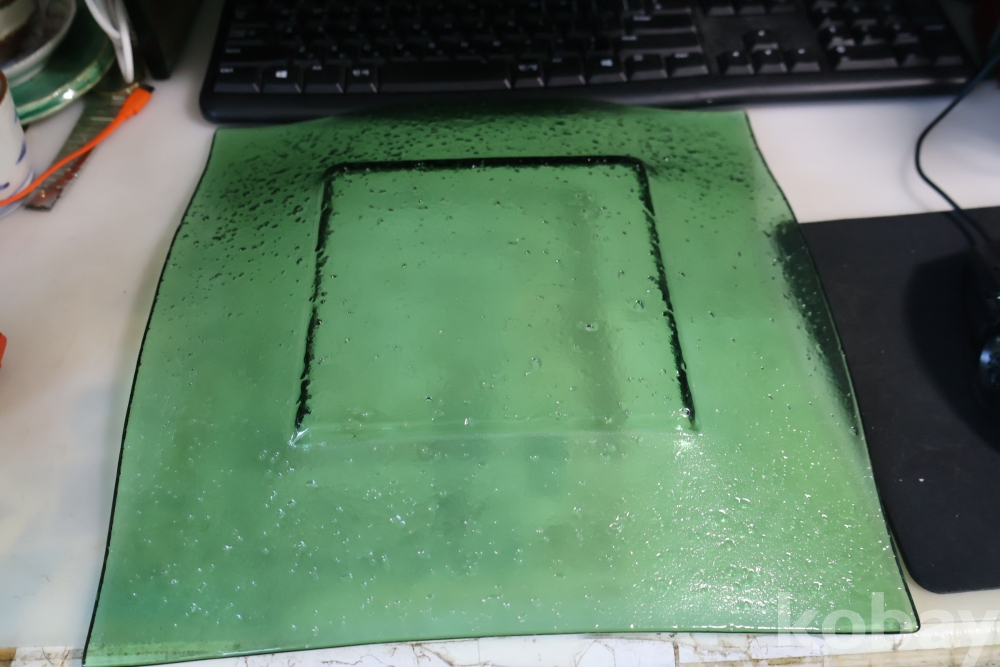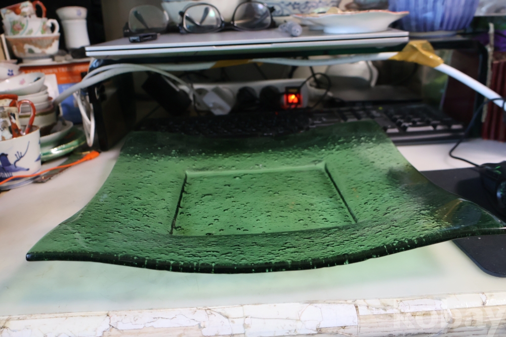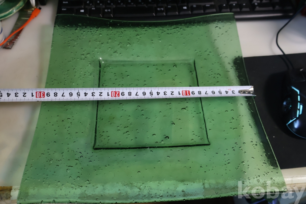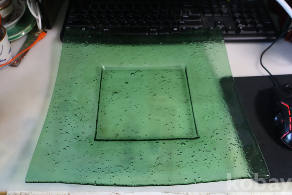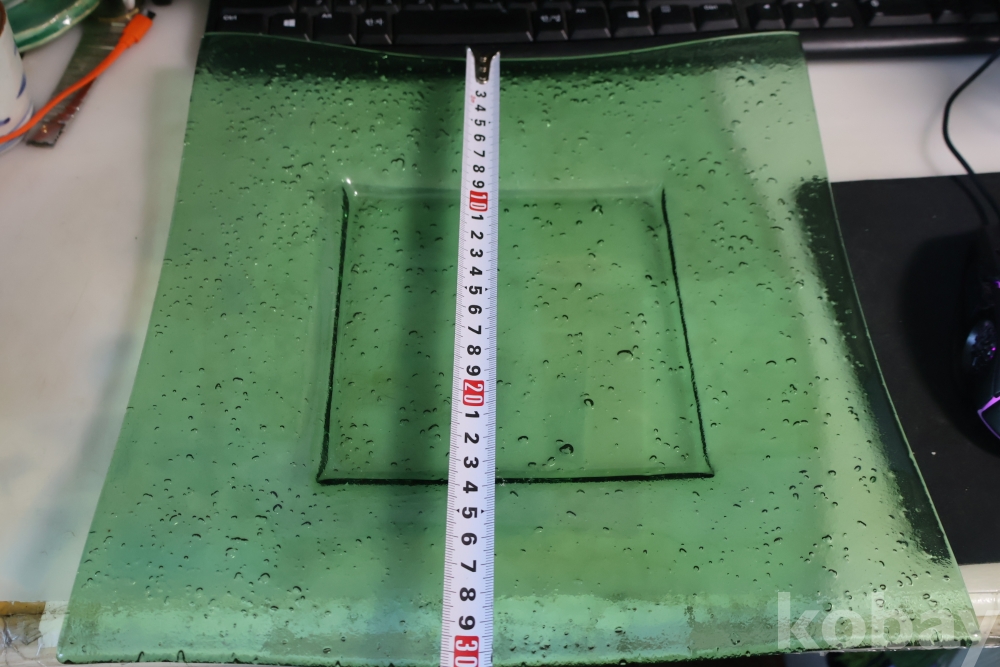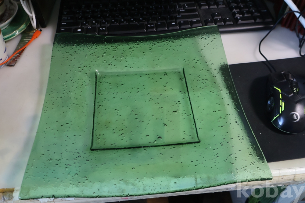 초록 색감의 묵직한 유리 도자기 접시 임니다 특히 기포 효과의 의도적인 작품 효과 대단 함니다 사진 참조 하세요