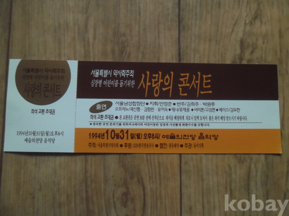 각종 티켓: 1994년 사랑의 콘서트(서울시약사회)