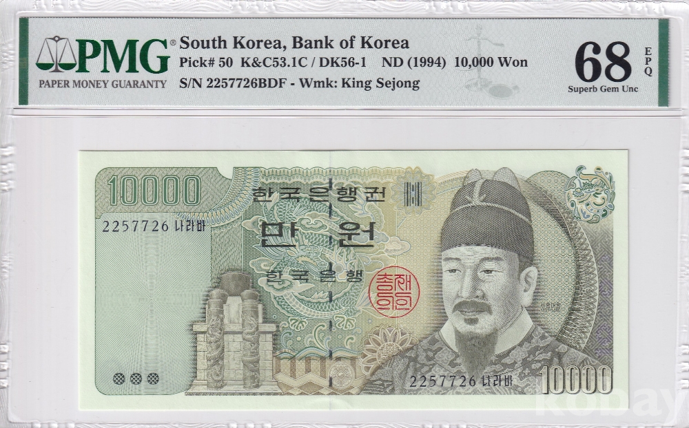 - 한국은행 1994년 4차 만원 22포인트 PMG 68 EPQ 고등급 인증지폐