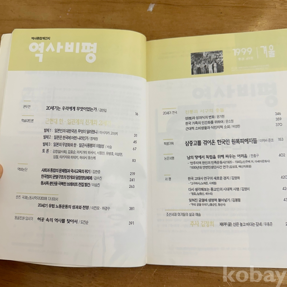 [한국현대사, 한일관계, 원폭피해자, 만주] 역사문제연구소, <역사비평 1999 겨울>, p. 425, 상태 중급(사진참조)