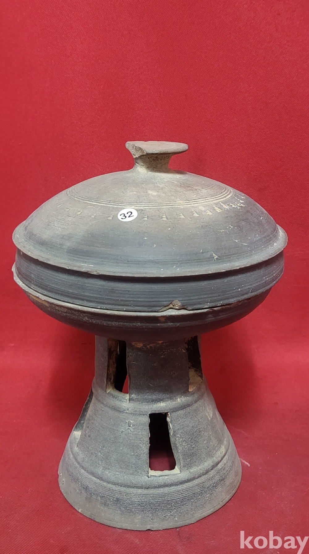 신라토기( 新羅土器) 점과줄(点線)문양 굽다리 접시 진품입니다,