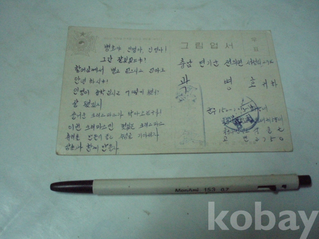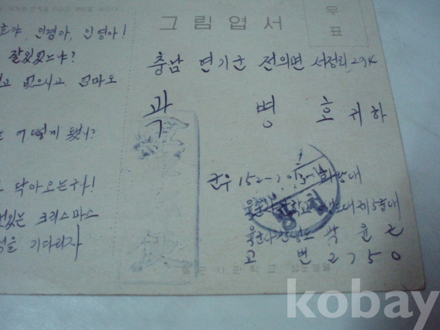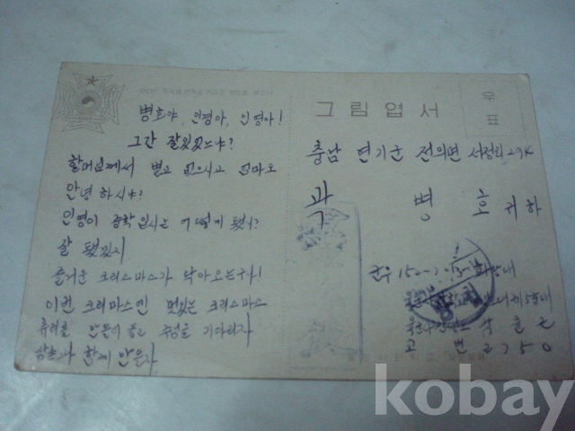 육군사관생도 - 그립엽서 (뒷면, 편지글)
