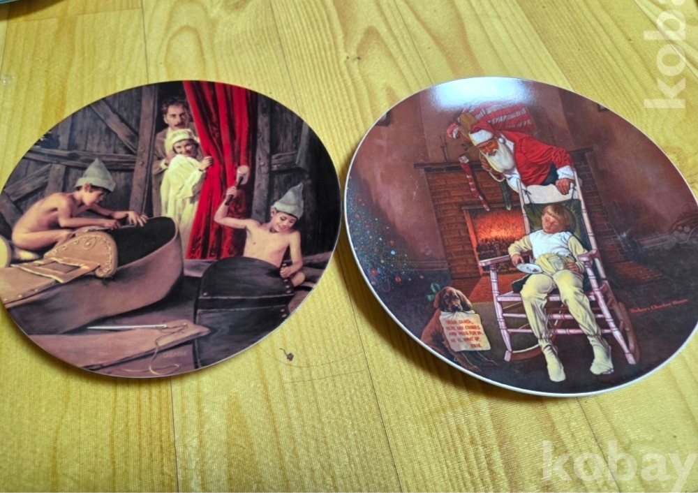 장식용 접시ㆍ리미티드 콜렉션 2종 일괄 산타와 소년 등ㆍ싸이즈20. 21.5