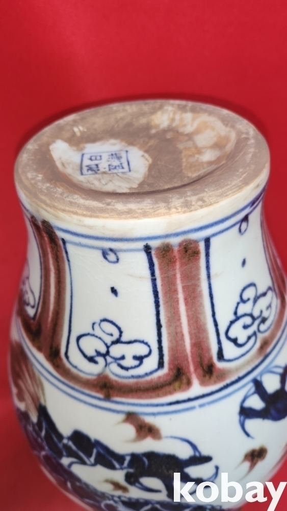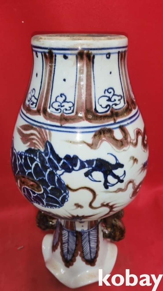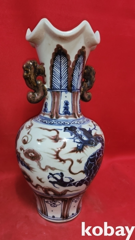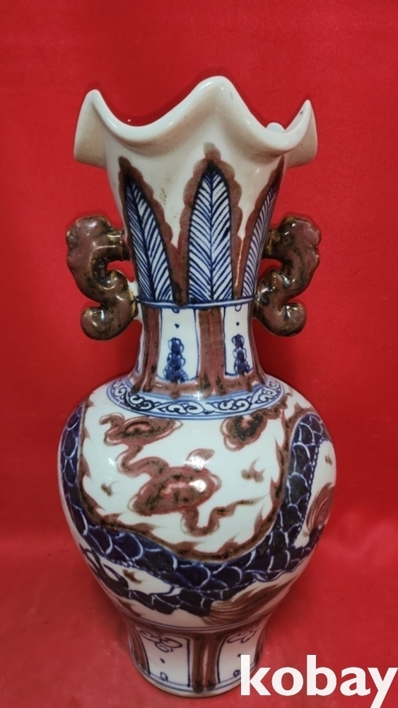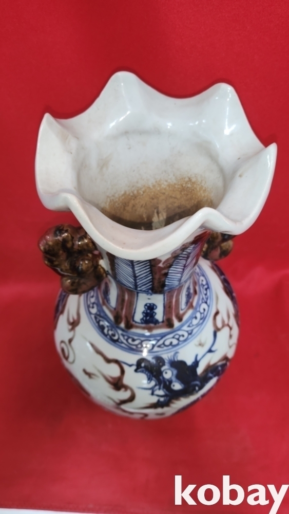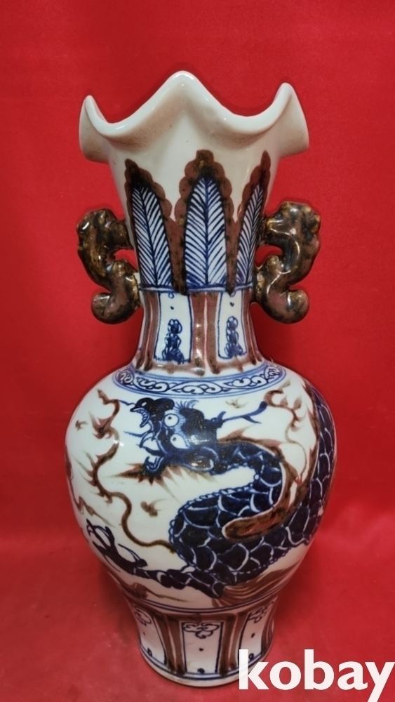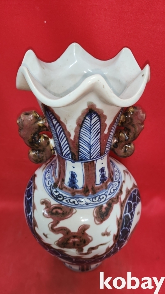 백허고요 관지 청화유리홍 운용문 양귀달린 광구병입니다,