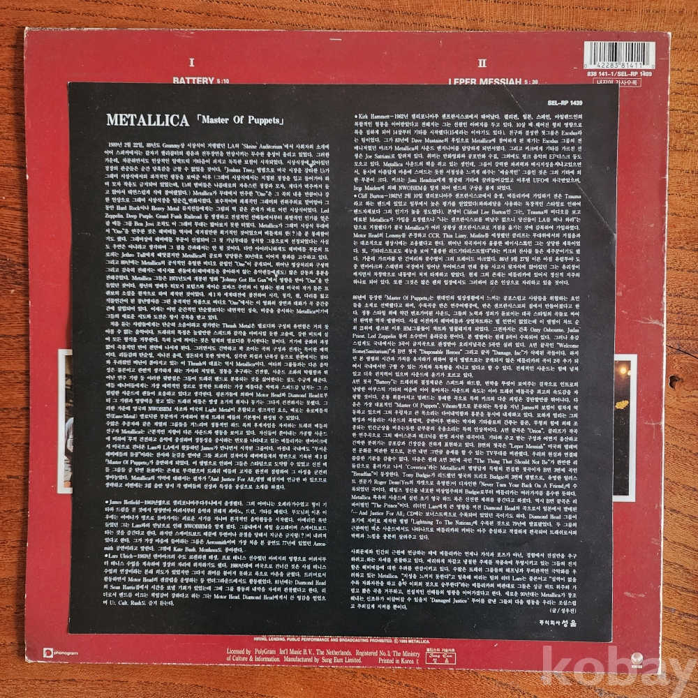 | 자켓상태 | EX : 약간의 마모, 모서리 찢김 존재 | 음반상태 | EX : 재생에 영향 없는 가벼운 기스 존재 | 발매정보 | 알수없음 | 가사지여부 | 유 |