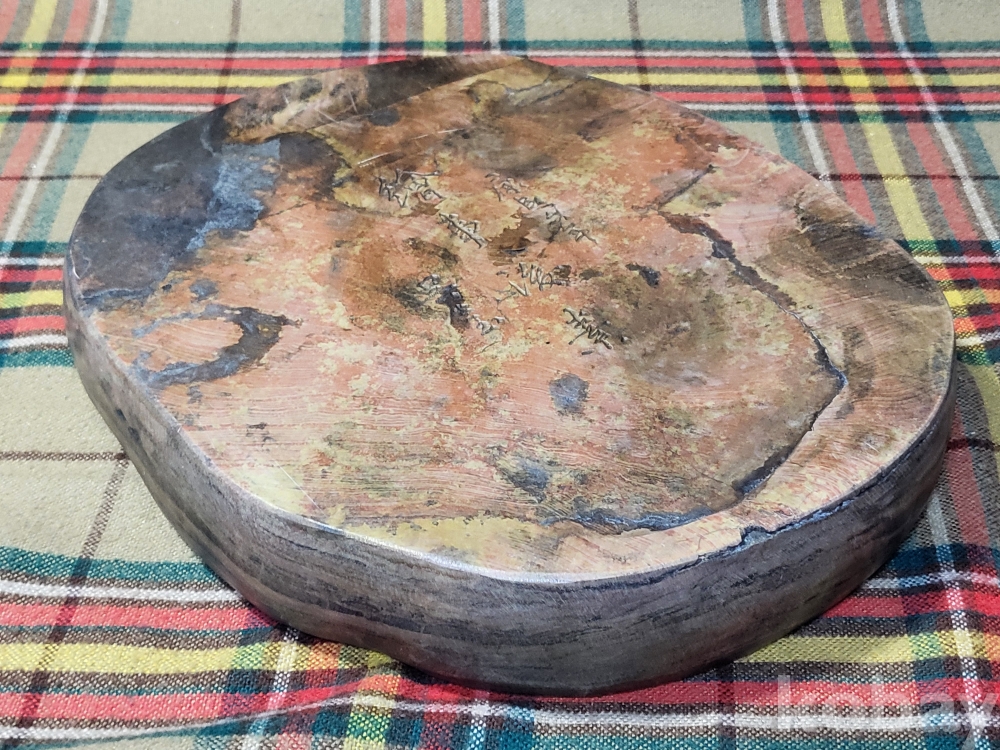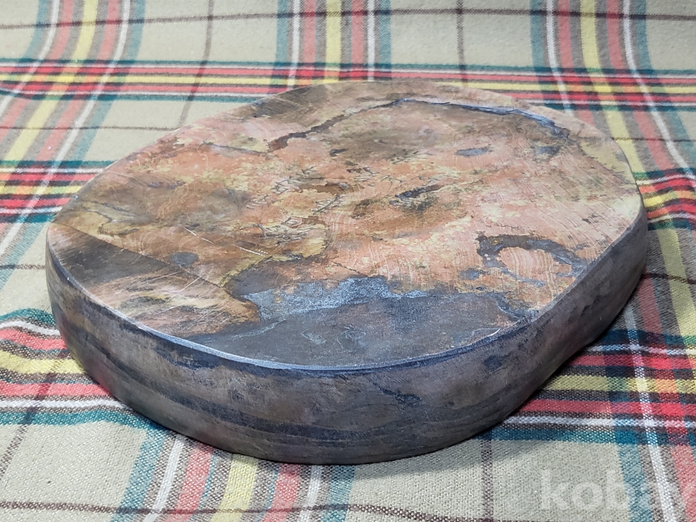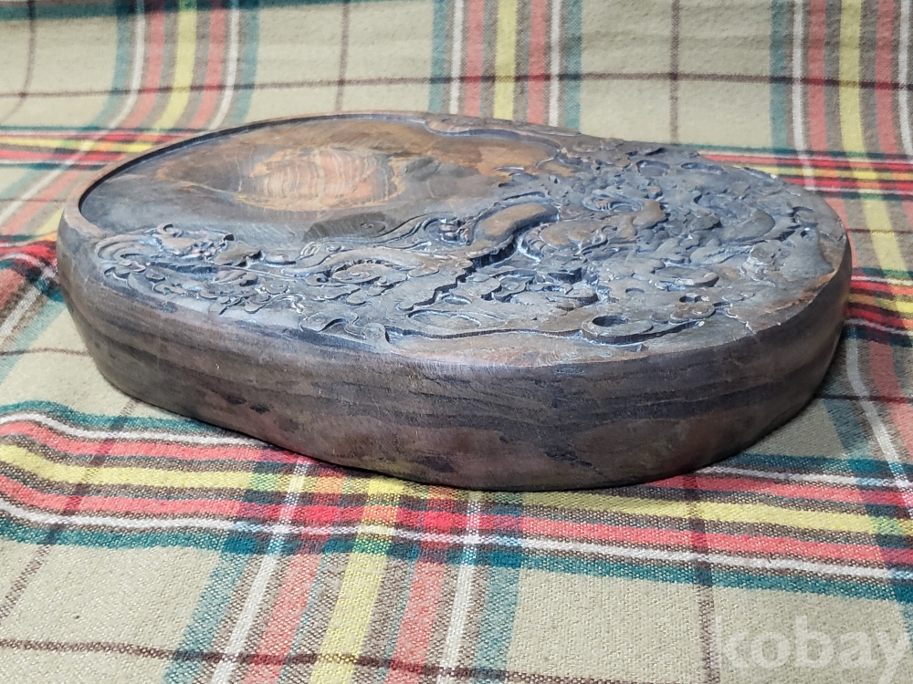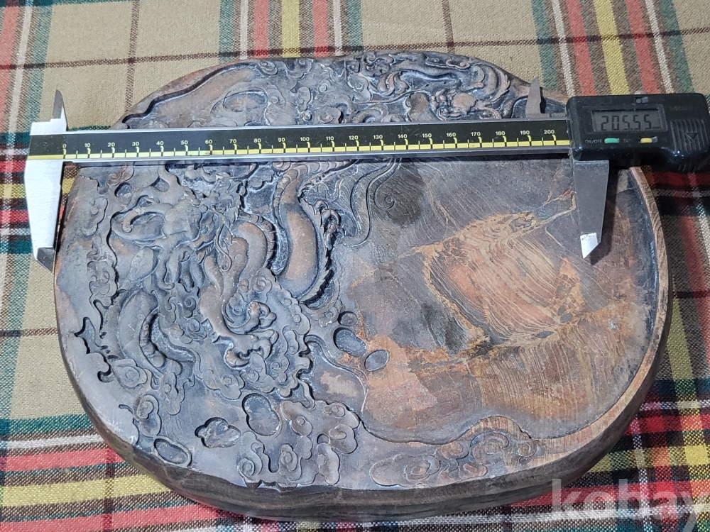 전장 24센티, 폭20.5센티, 두께 3.7센티, 중량 4kg남짓의 대형. 홍사연 벼루.