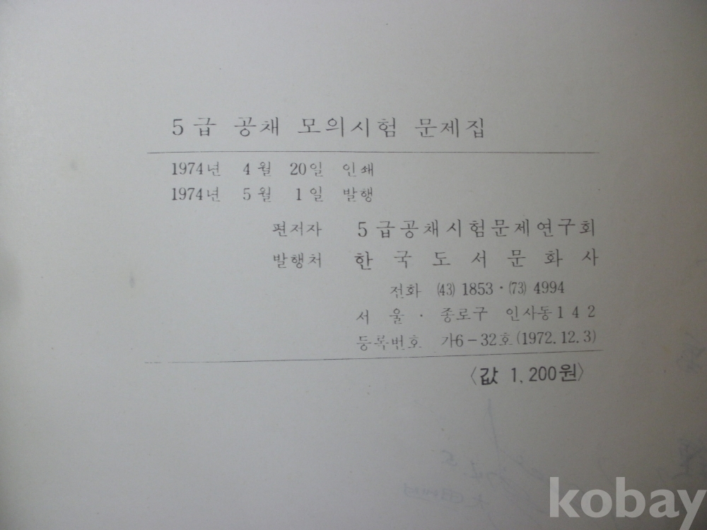 5급 모의시험 문제집 - 100% 적중 (1974년, 한국도서문화사)