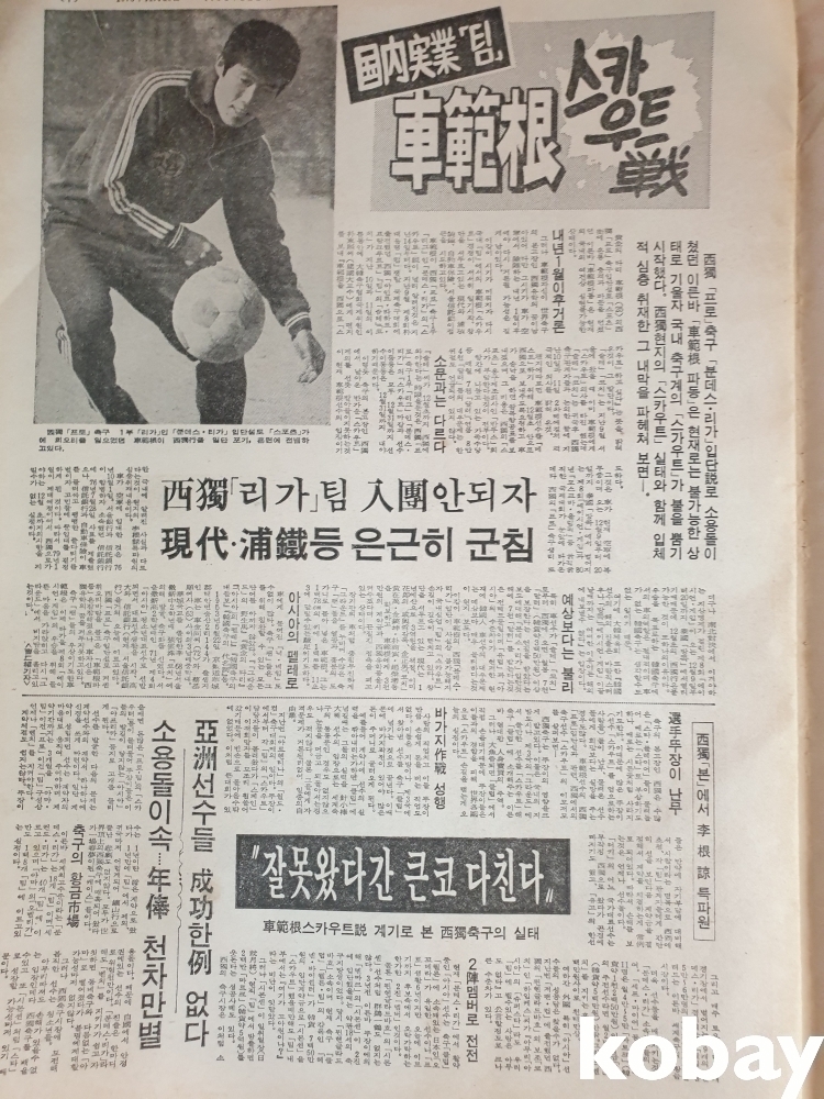 차범근 축구 스타 기사가 실렸읍니다,