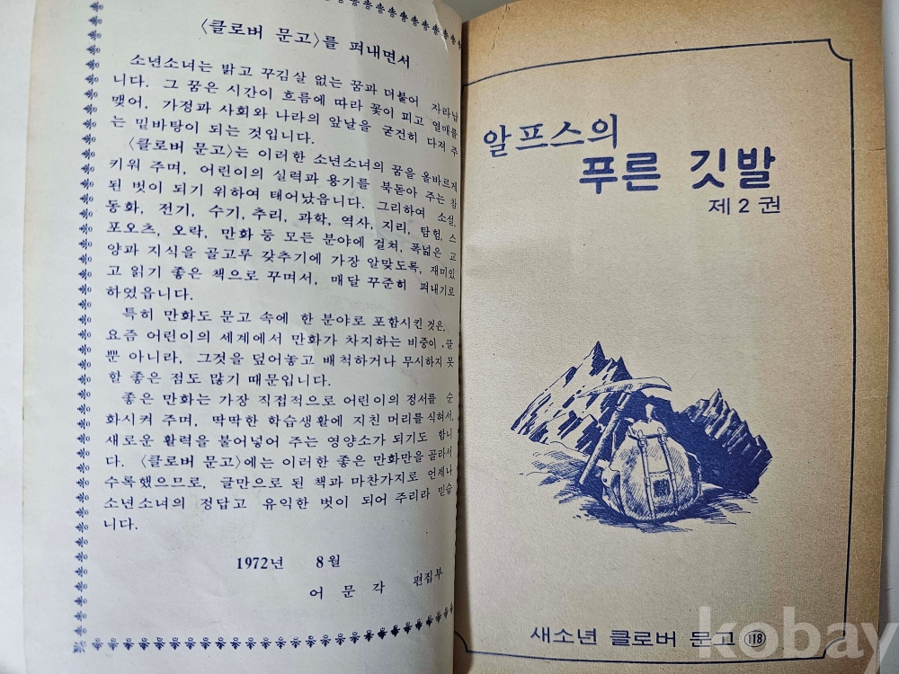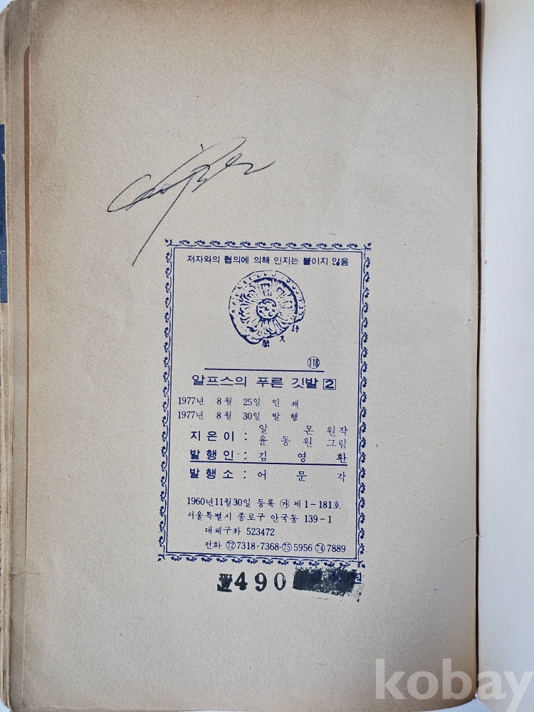 물 품 명 | 알프스의 푸른 깃발 2편 / 윤동원 만화 / 1977년 / 어문각 |