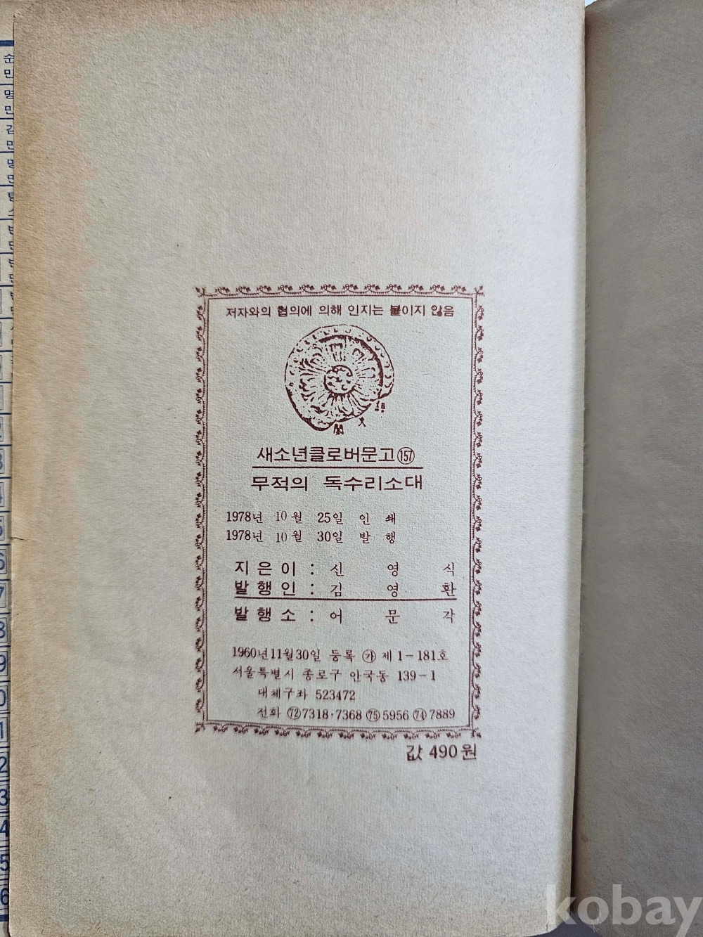 물 품 명 | 무적의 독수리 소대 / 신영식 만화 / 1978년 / 어문각 |