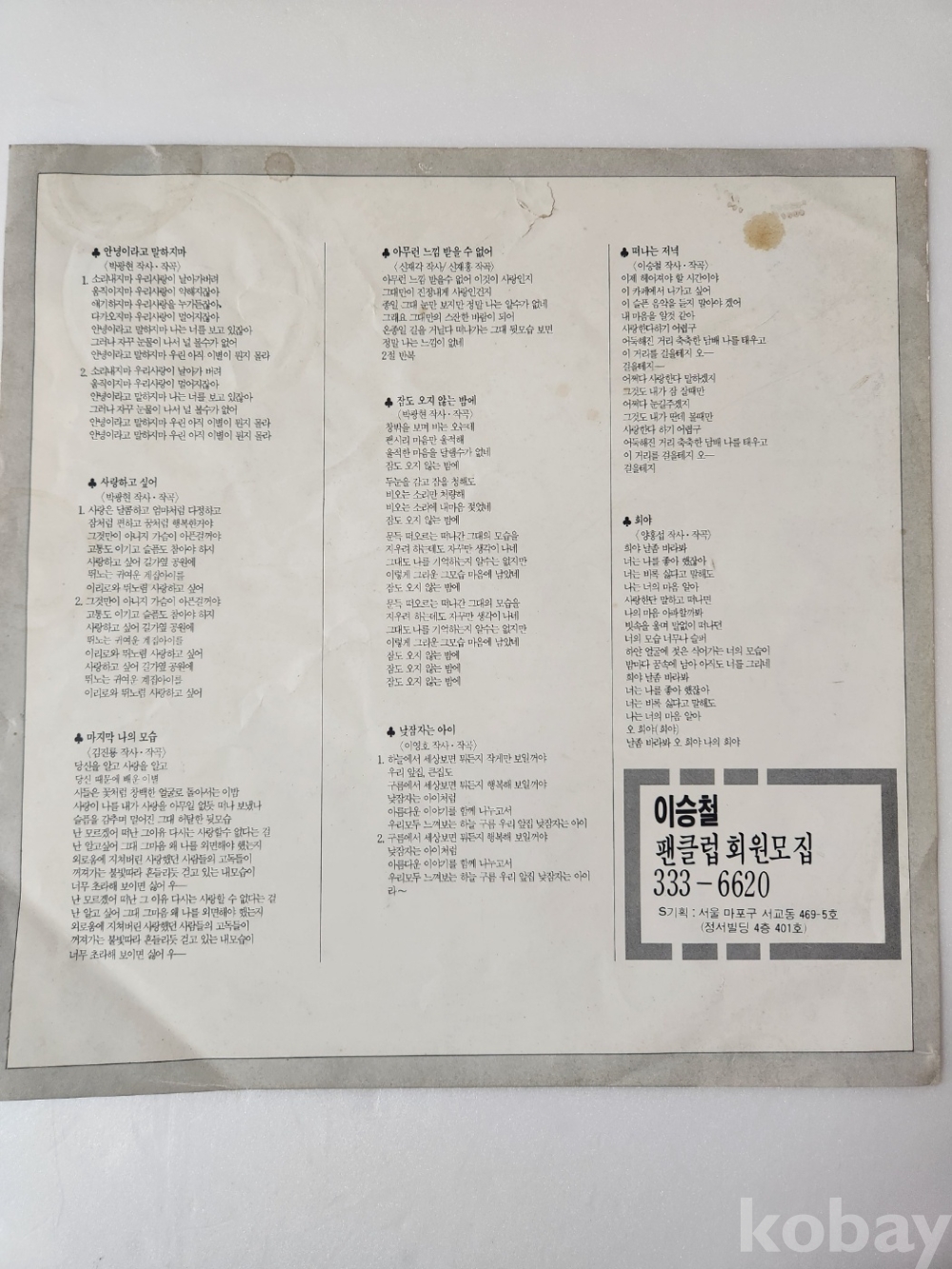 이승철 1집 LP판입니다.