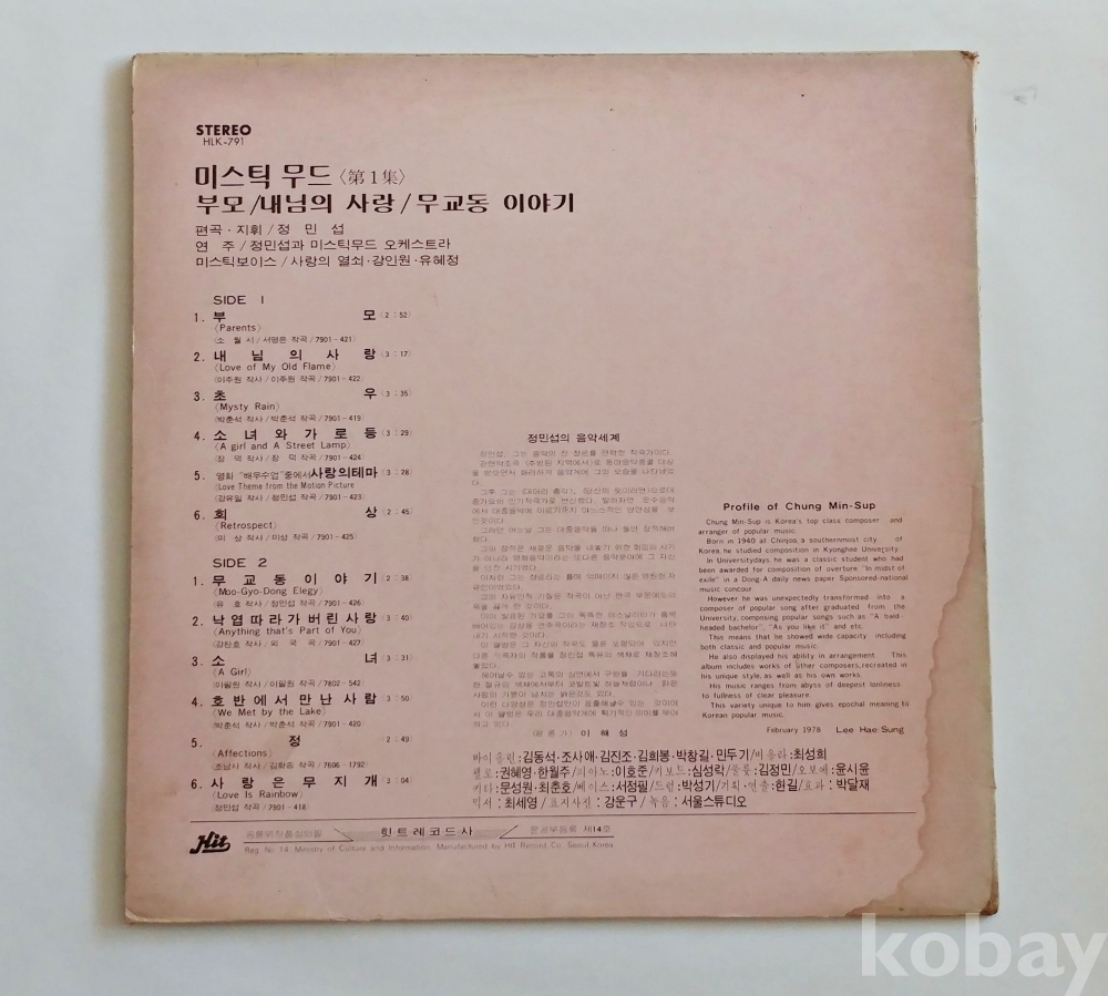 EX : 약간의 마모, 모서리 찢김 존재 음반상태