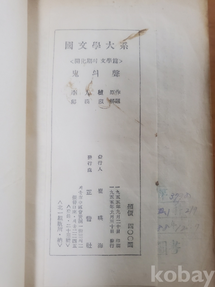1. 귀의 성, 이인직, 정음사, 1955년, 225쪽, 상태 상, 사진 참조