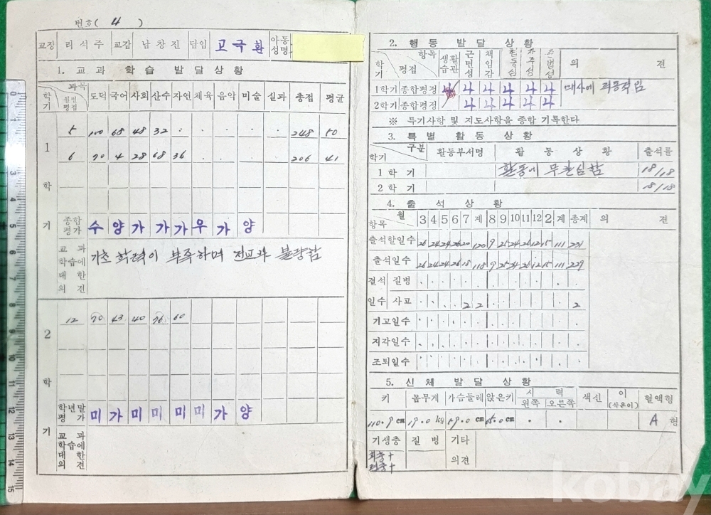졸업장/통지표/상장_안정남부국민학교/1976년/1학년 생활통지표/