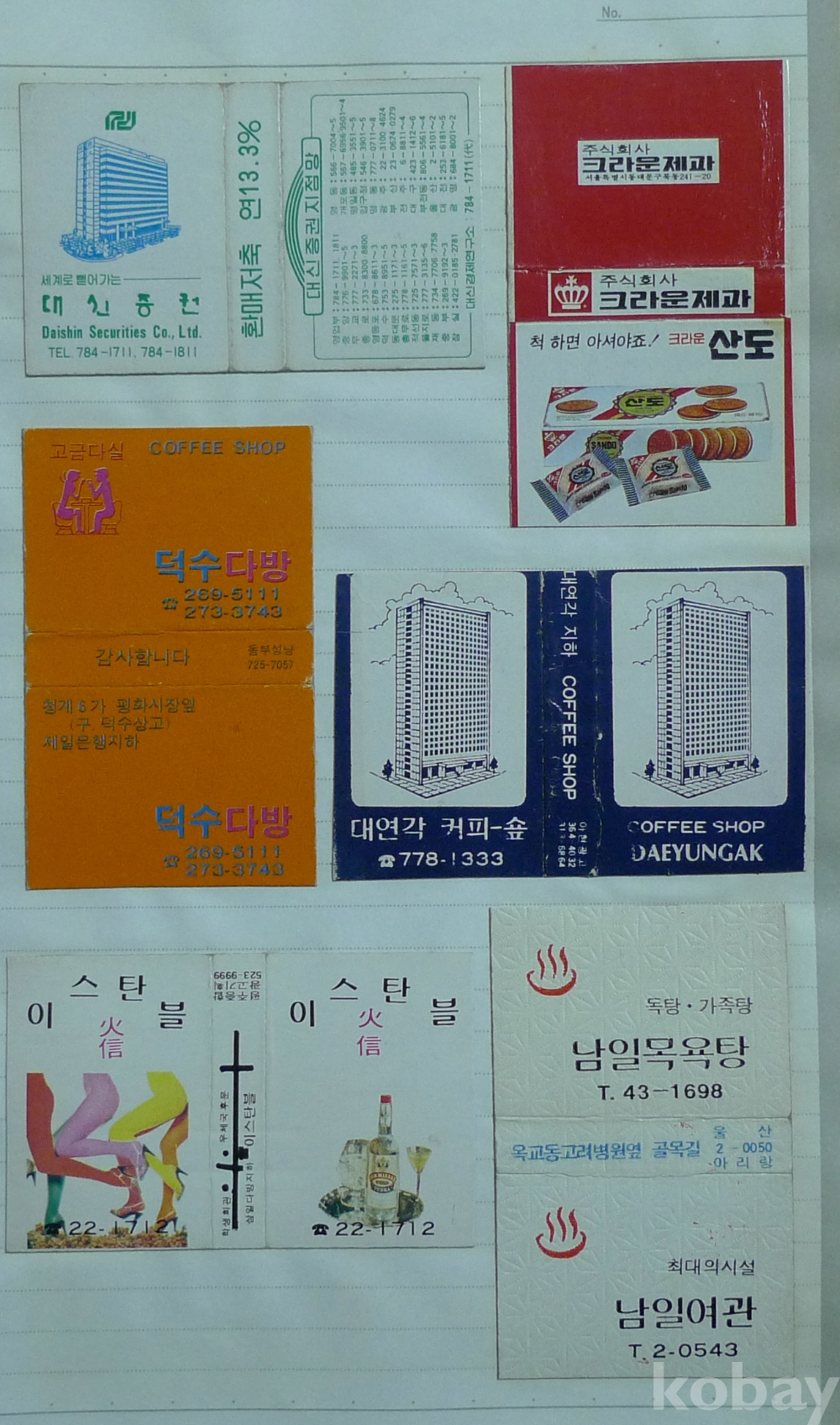 당구장, 다방, 음식점 광고 성냥 모음 6