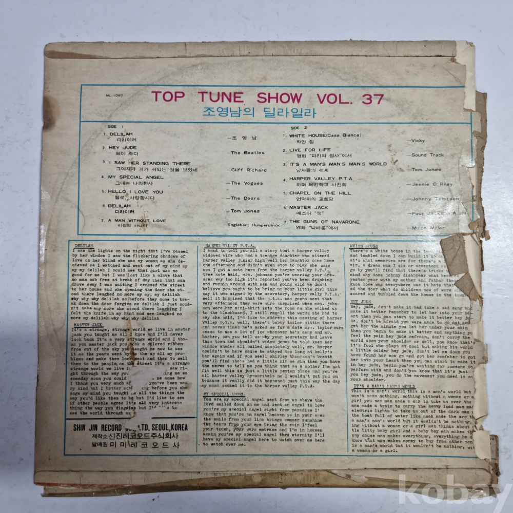 1968년 조영남, 톰 존스의 딜라일라 (TOP TUNE SHOW VOL. 37) 음반입니다.
